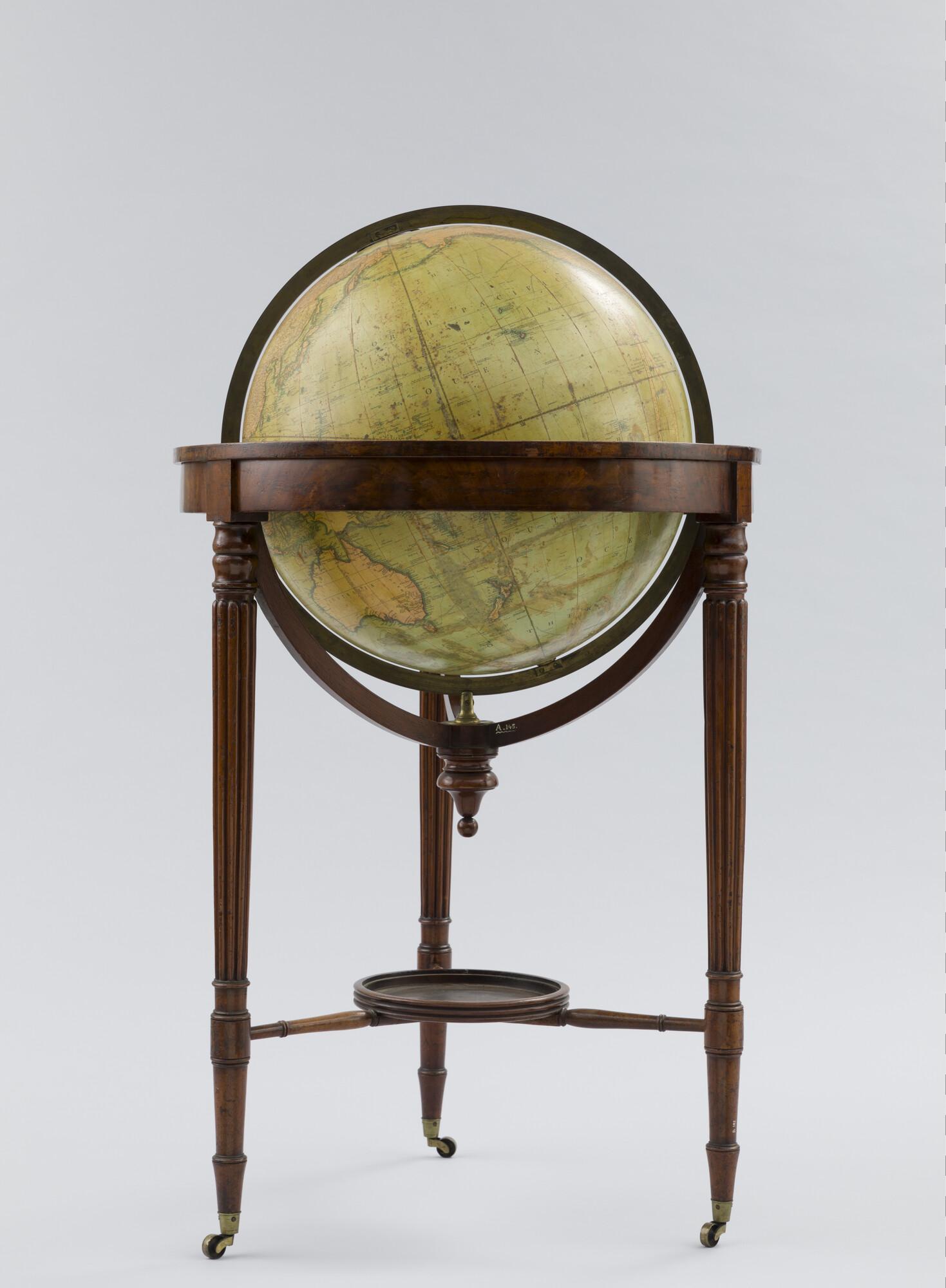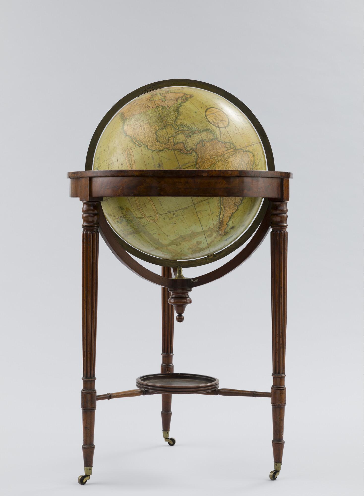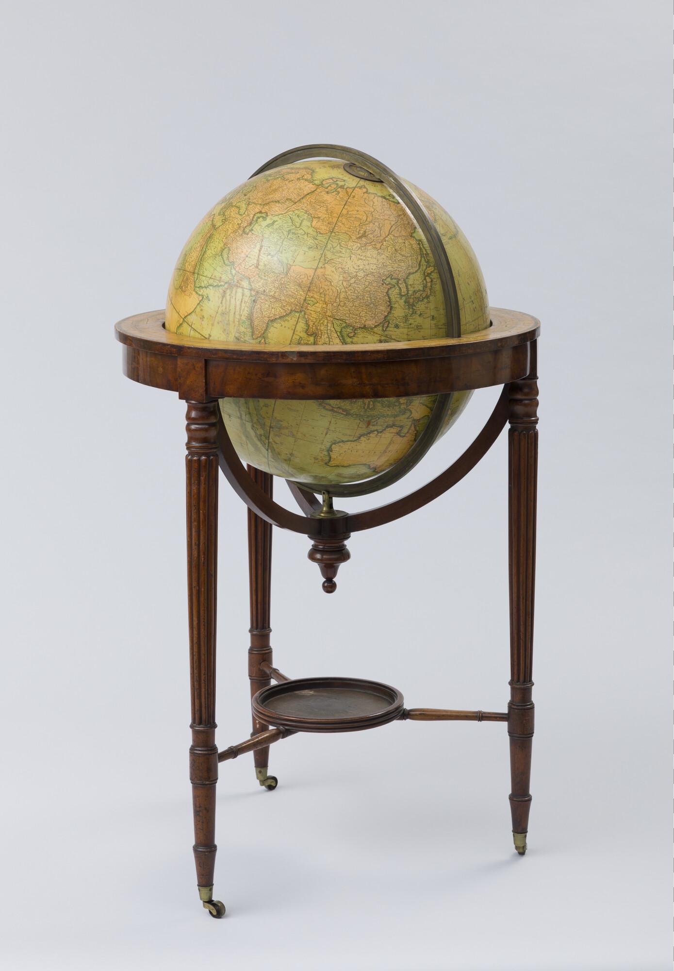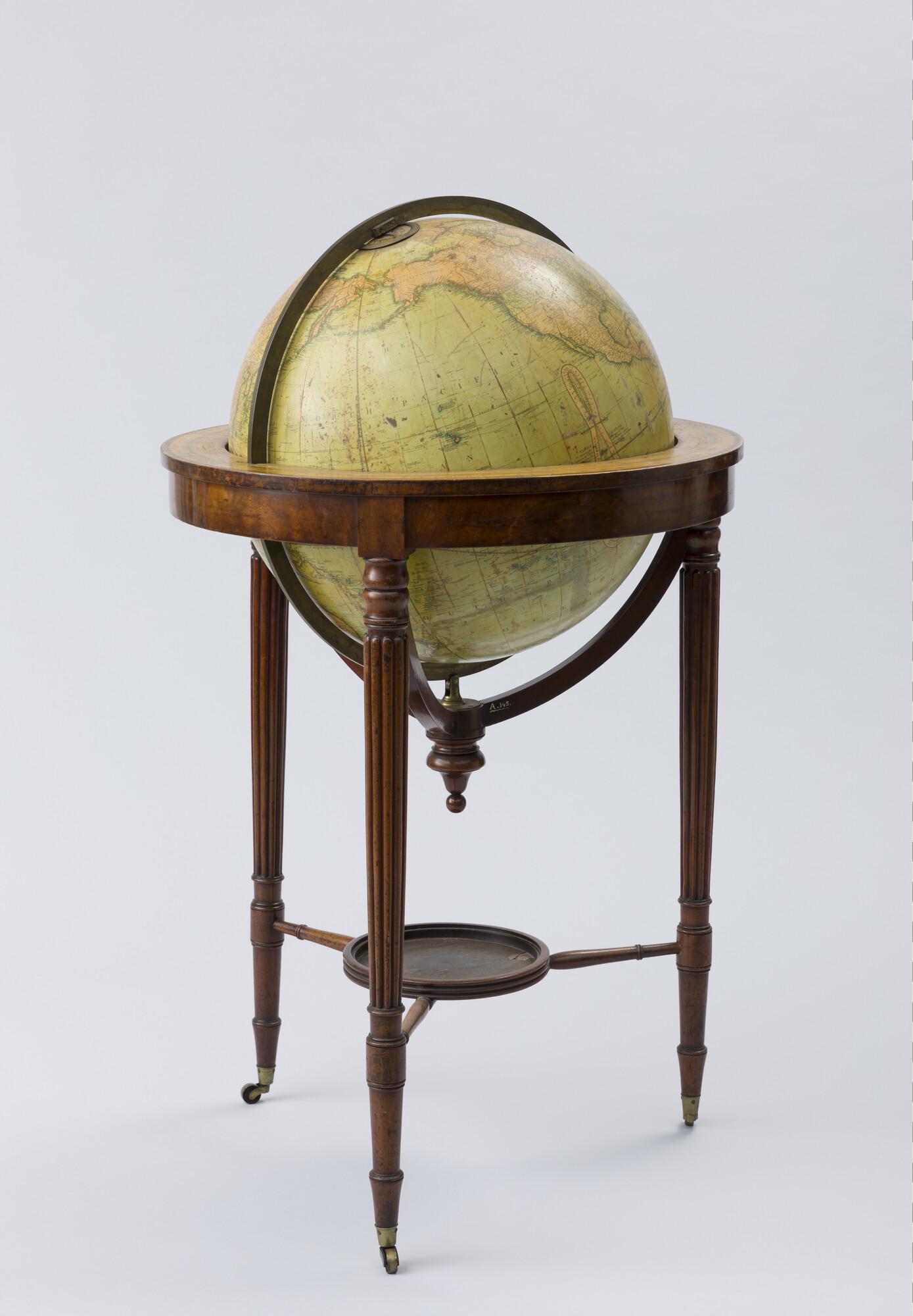 Aardglobe van 53,5 cm. in doorsnede door John en William Cary, 1815, in de verbeterde uitgave van 1828