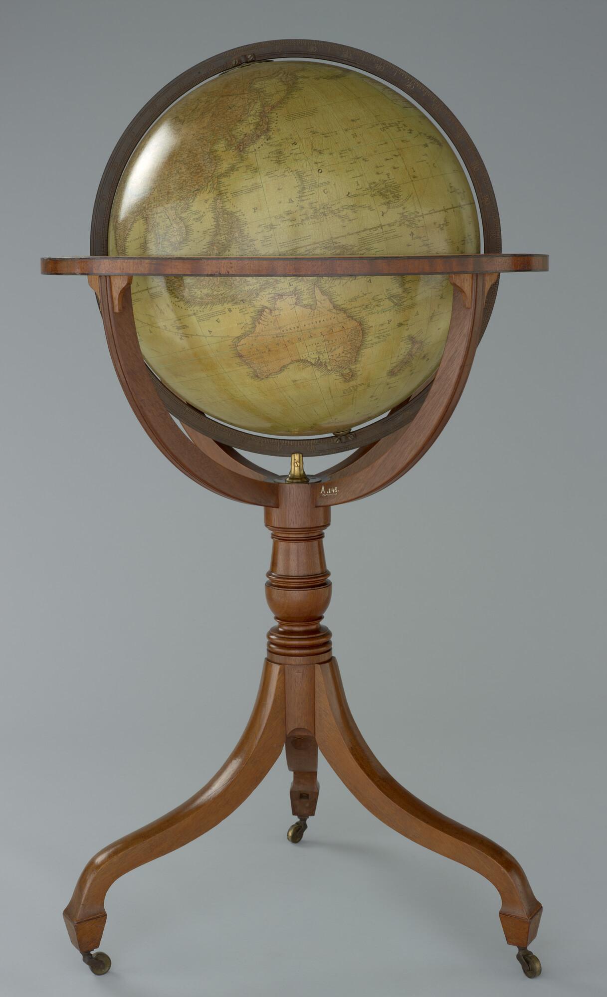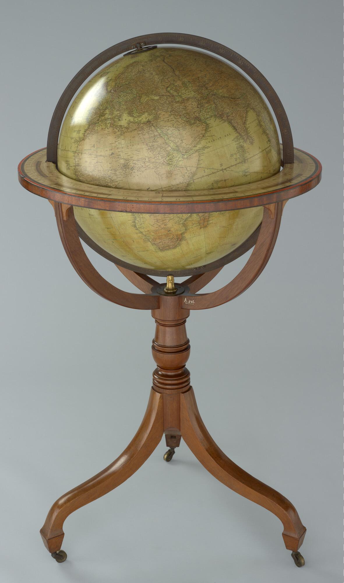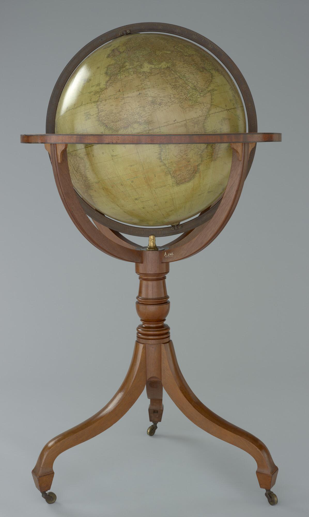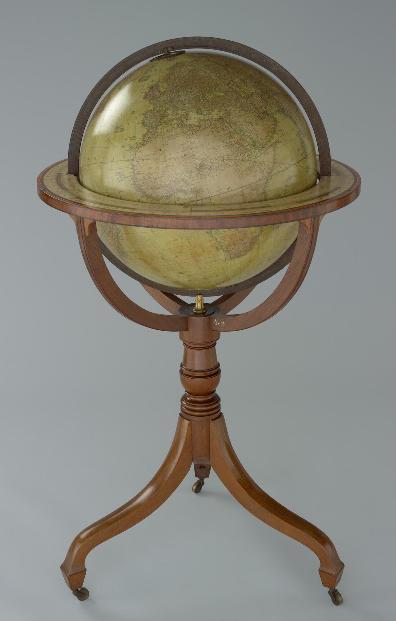Aardglobe van 45,5 cm doorsnede door Thomas Malby & Son te Londen uit 1860.