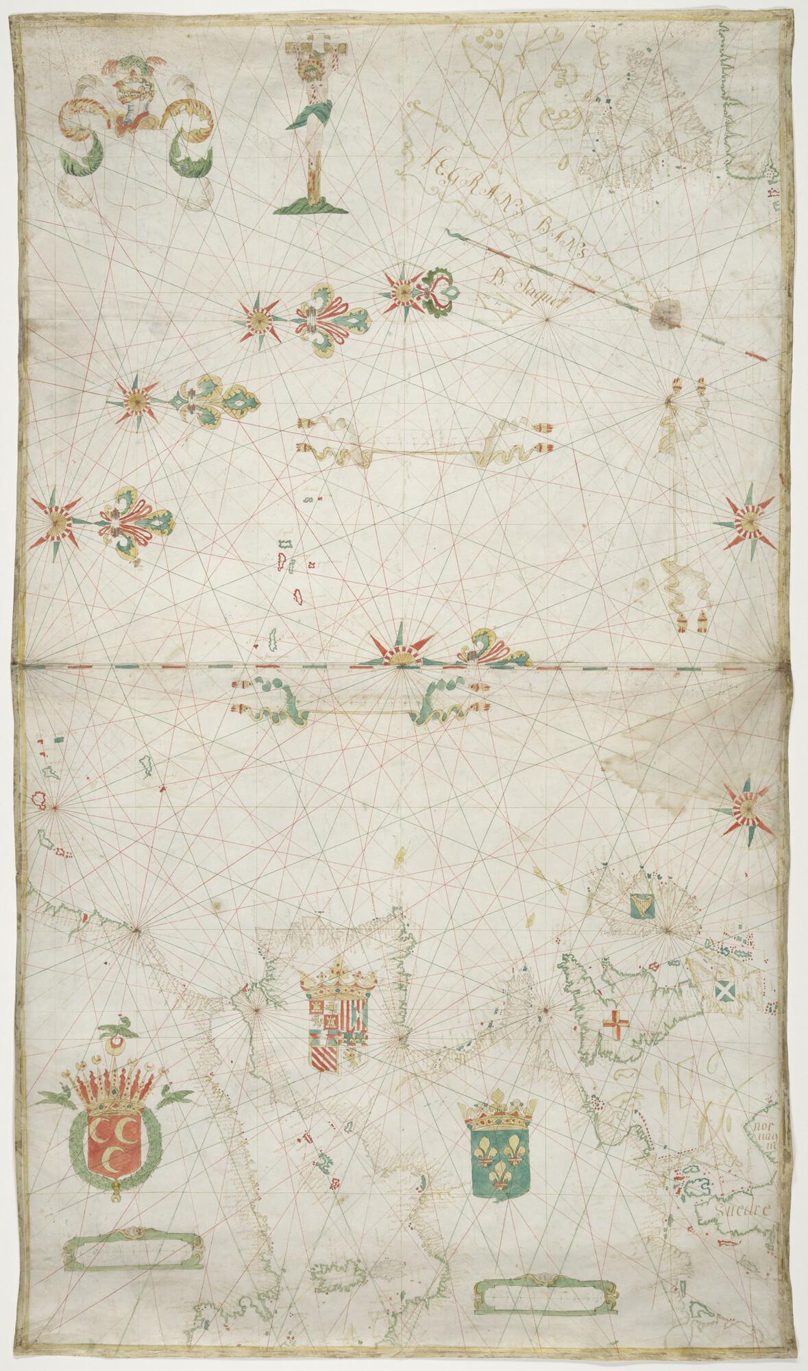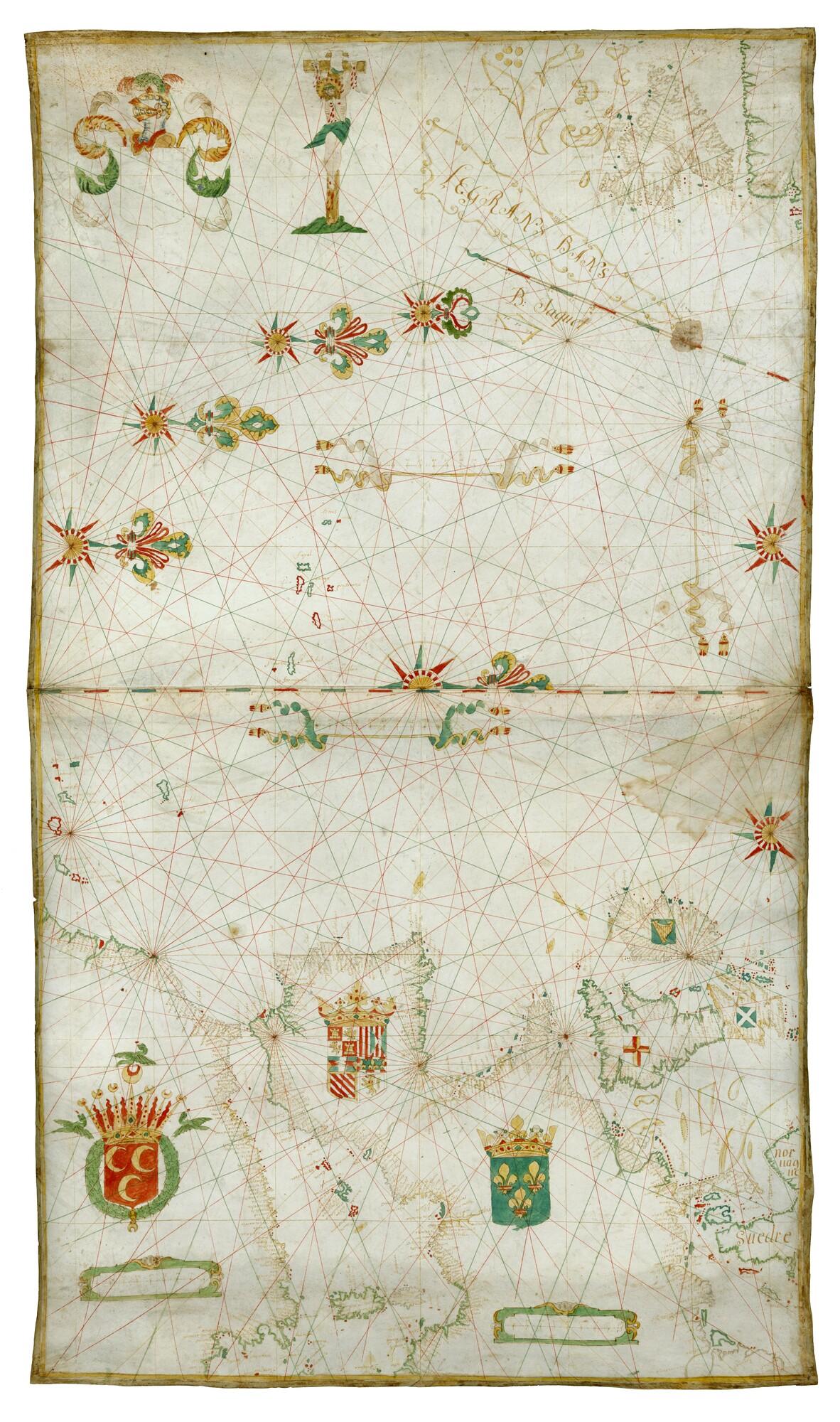 Zeekaart door B. Jacquet uit circa 1600 van de Noord Atlantische Oceaan