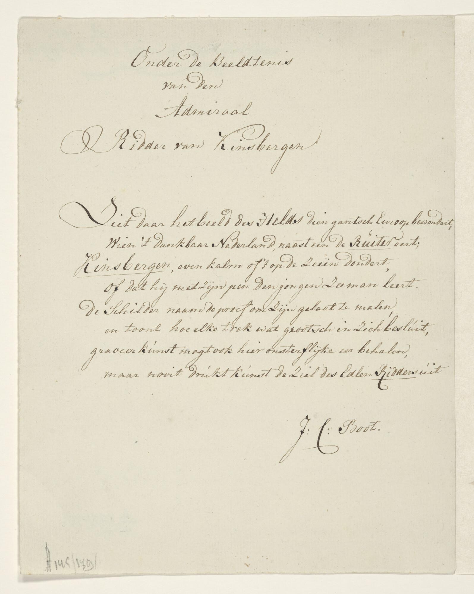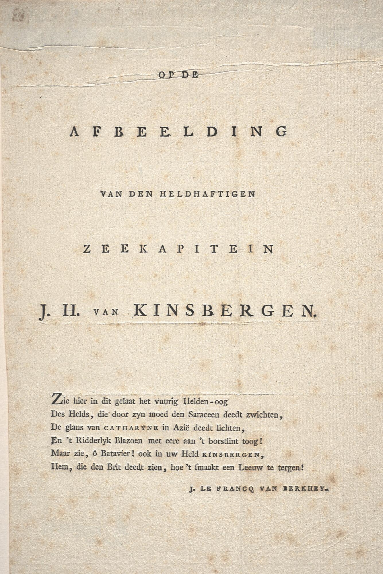 Tekst behorende bij de beeltenis van vice-admiraal J.H. van Kinsbergen [door J. L. Boot].