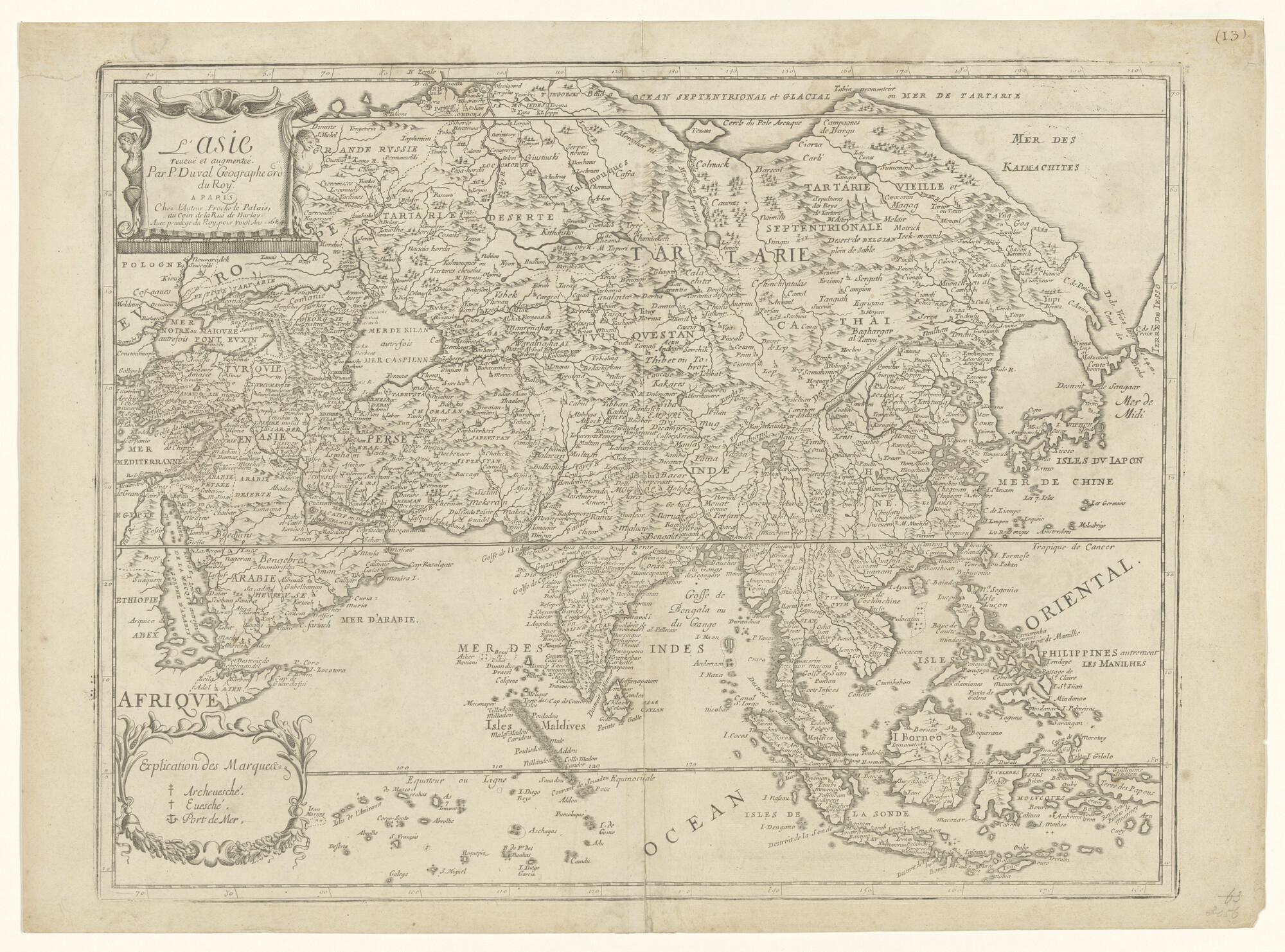 Kaart van Azië door Pierre Du Val d' Abbéville (1618 - 1683), Parijs, 1684 (schaal 1 op 400.000).