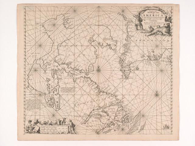 Paskaart van de noordwestkust van Noord-Amerika tussen IJsland en Terra Neuf. Uitgave Johannes van Keulen (1654 - 1715) Amsterdam, circa 1680.