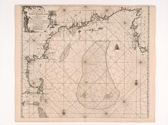 Paskaart van de kust in de bocht van Nieuw Engeland tussen Staten Hoek en Kaap de Sable, door Claas Jansz. Vooght (overleden 1696). Uitgave Johannes van Keulen (1654 - 1715) Amsterdam, circa 1688.