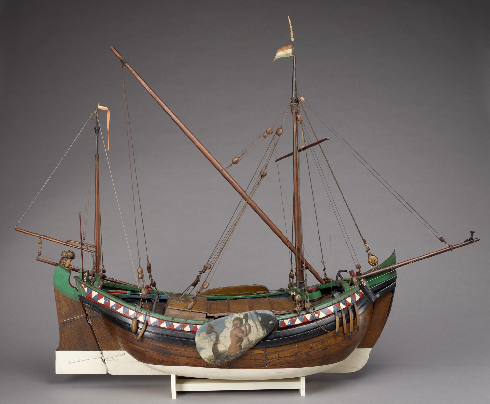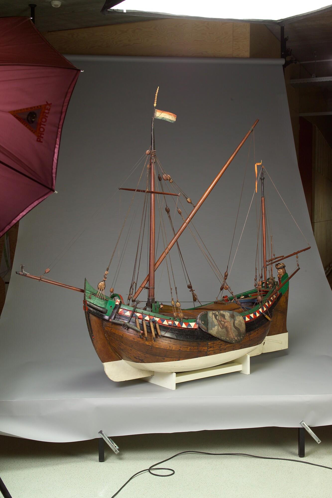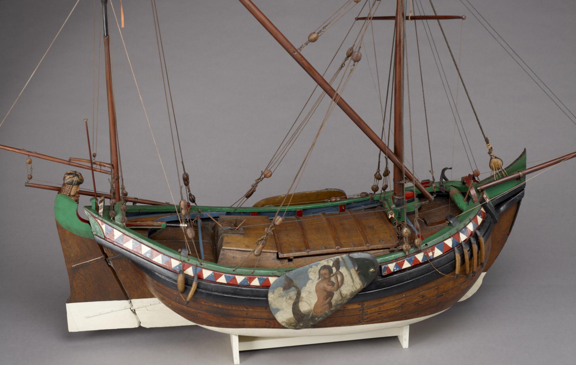 Getuigd model van een zeventiende-eeuws smakschip, gemerkt 1676.