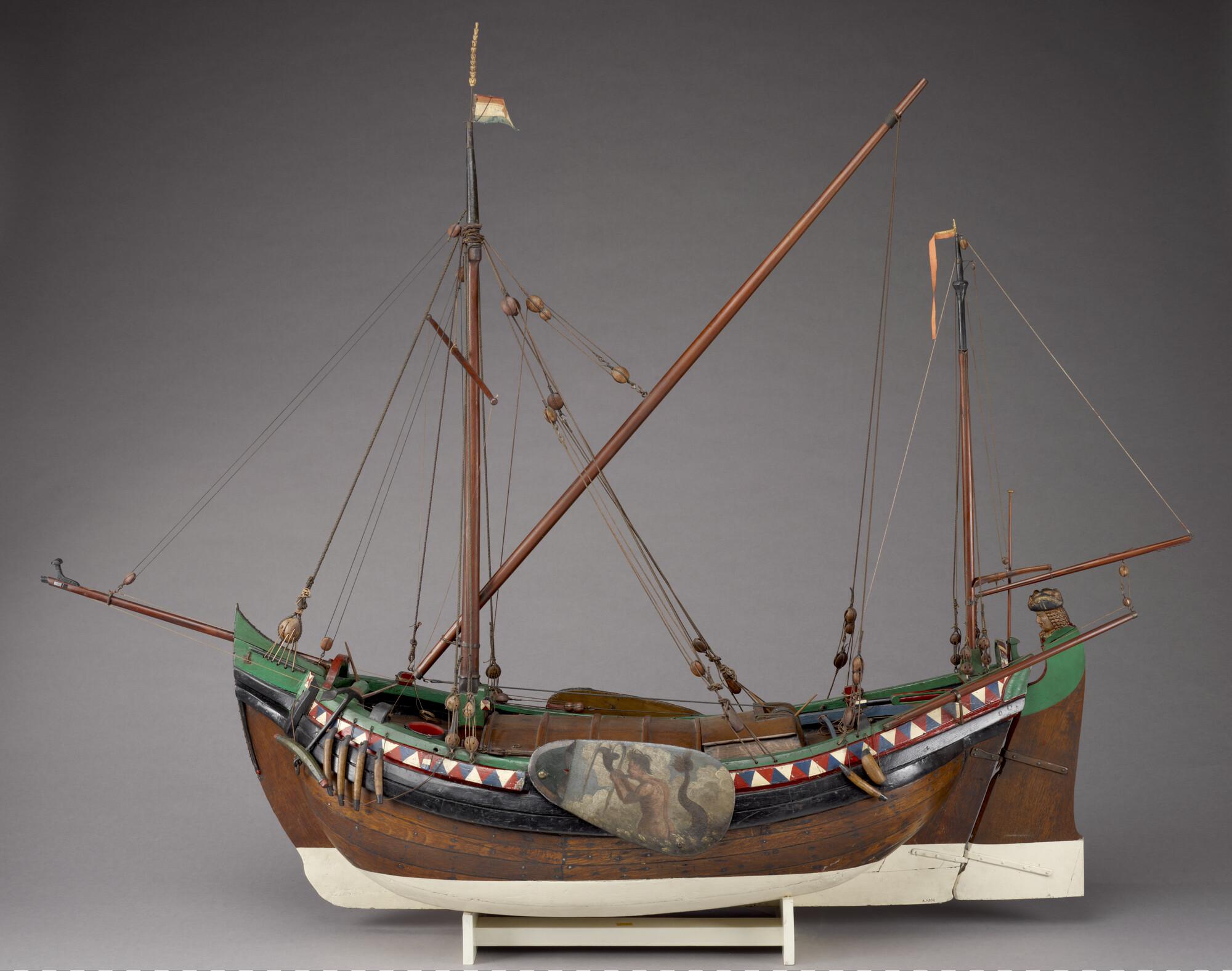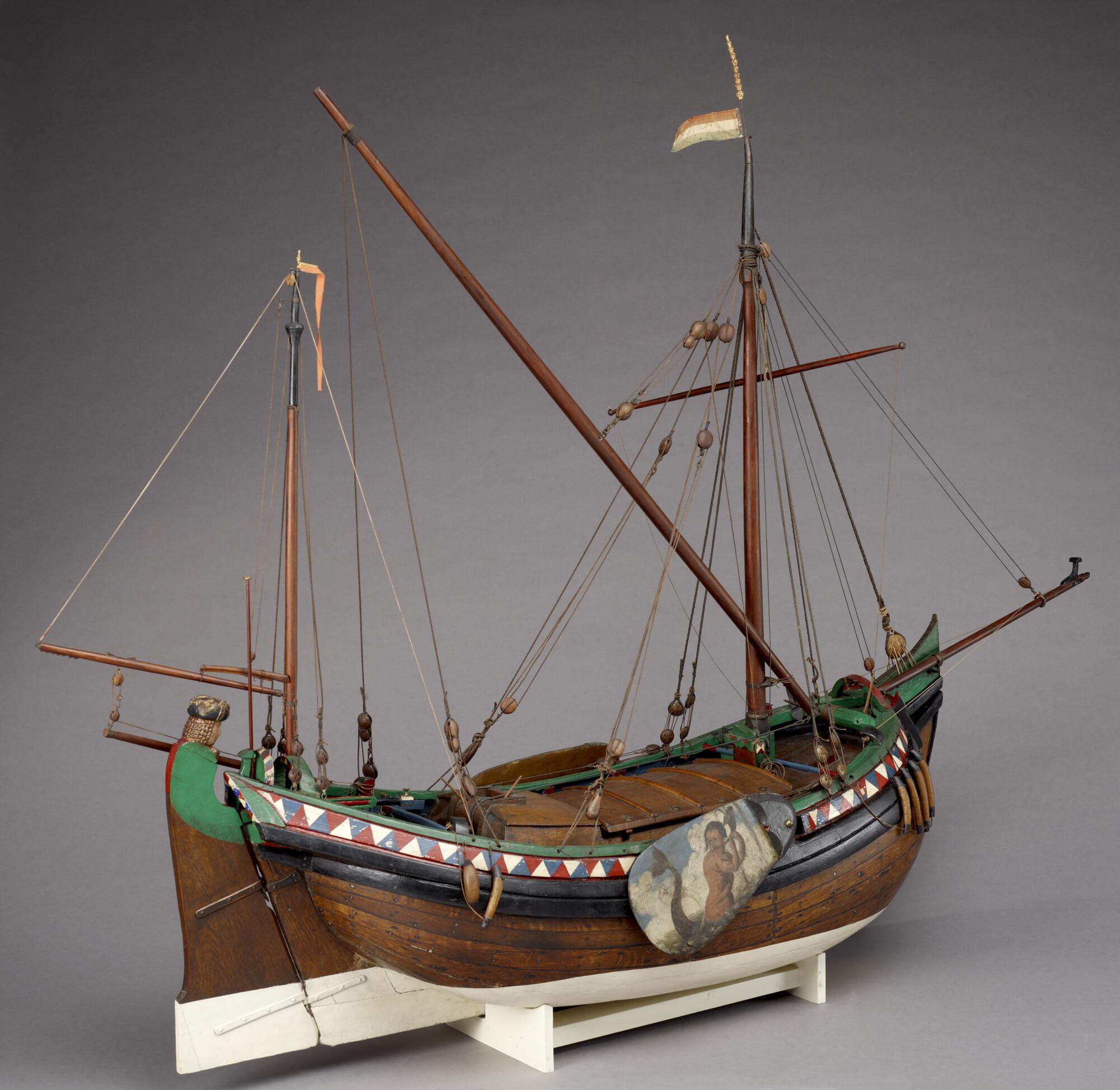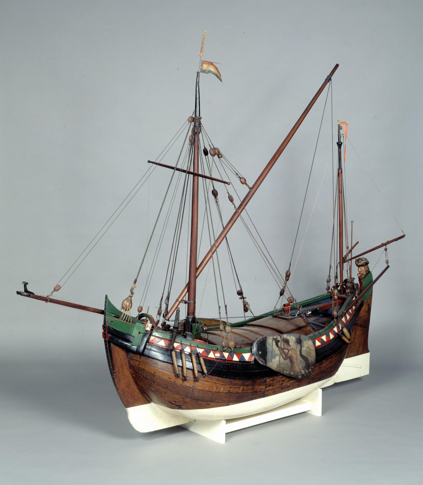Getuigd model van een zeventiende-eeuws smakschip, gemerkt 1676.