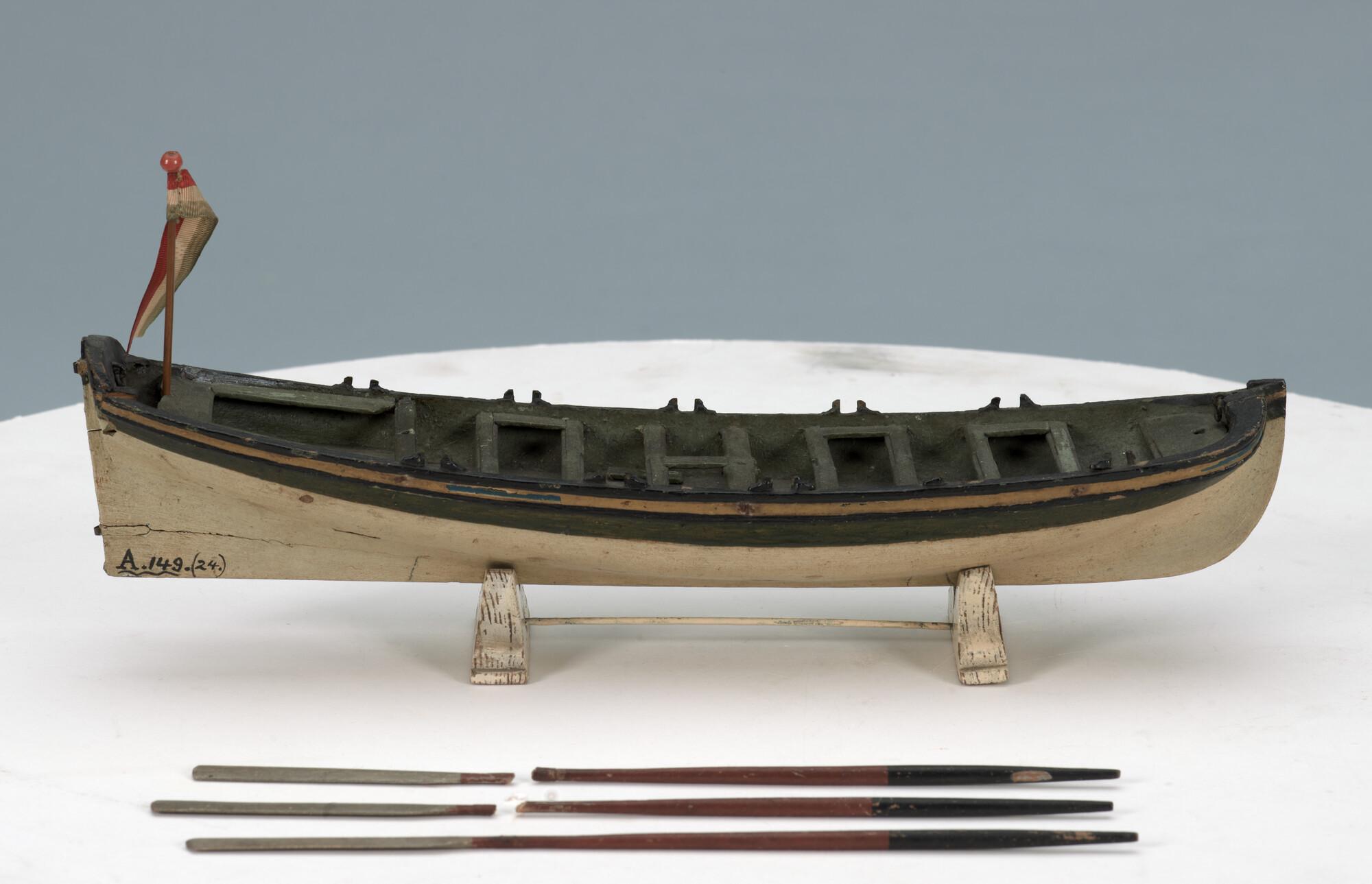 Model van de grote sloep van een oorlogsschip, achttiende eeuw.