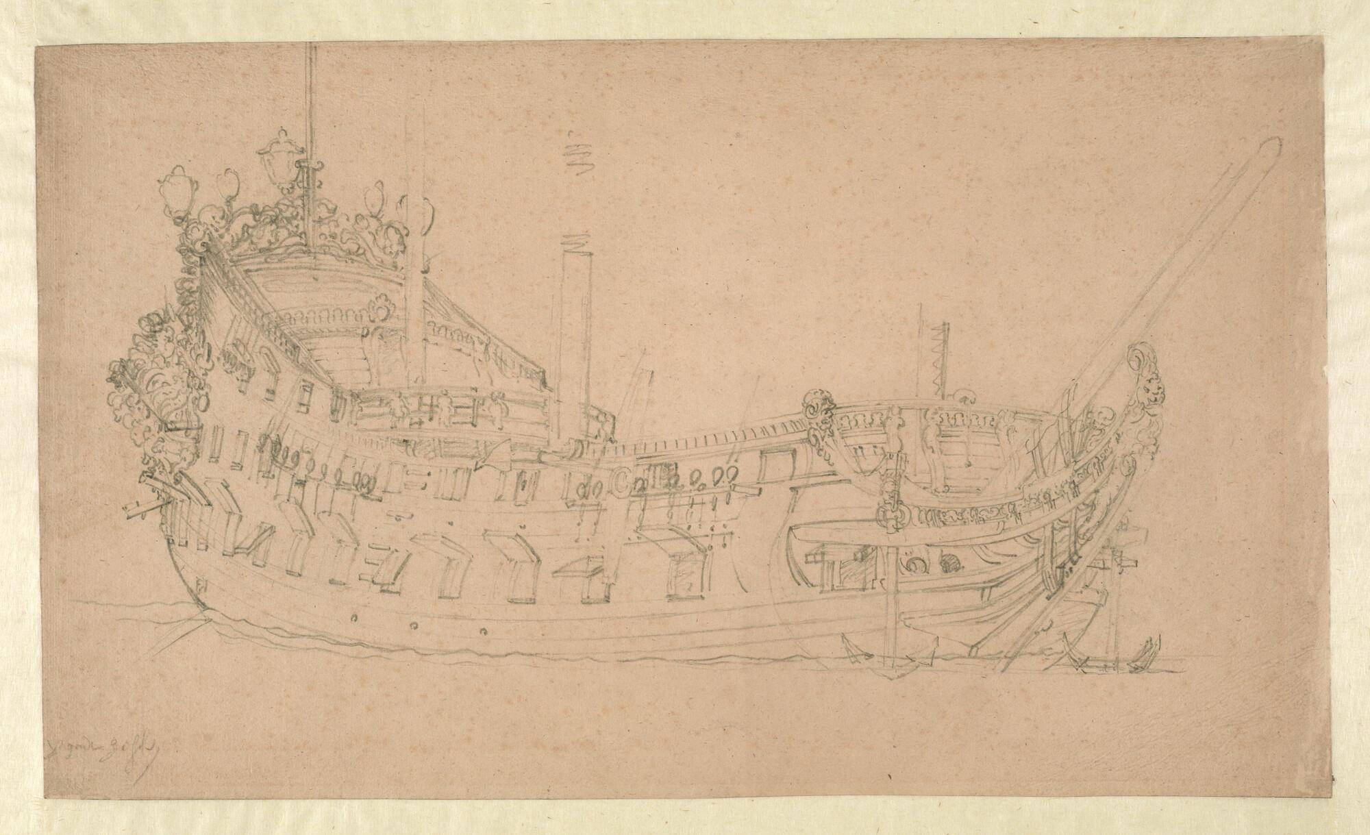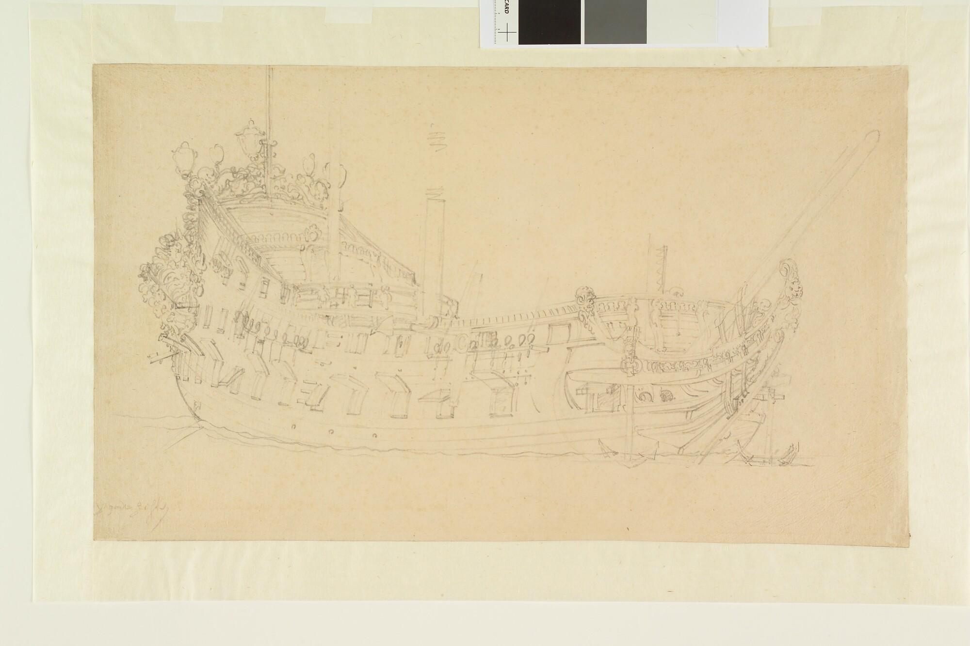 De tekening van het oorlogsschip Schielant van 60 stukken.