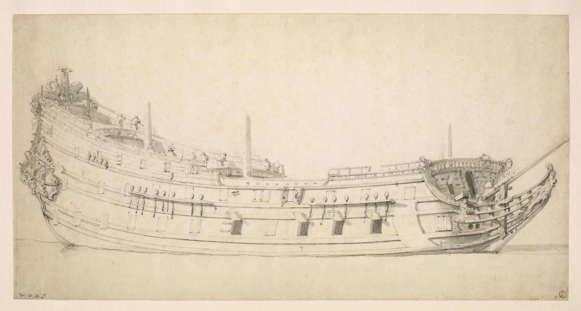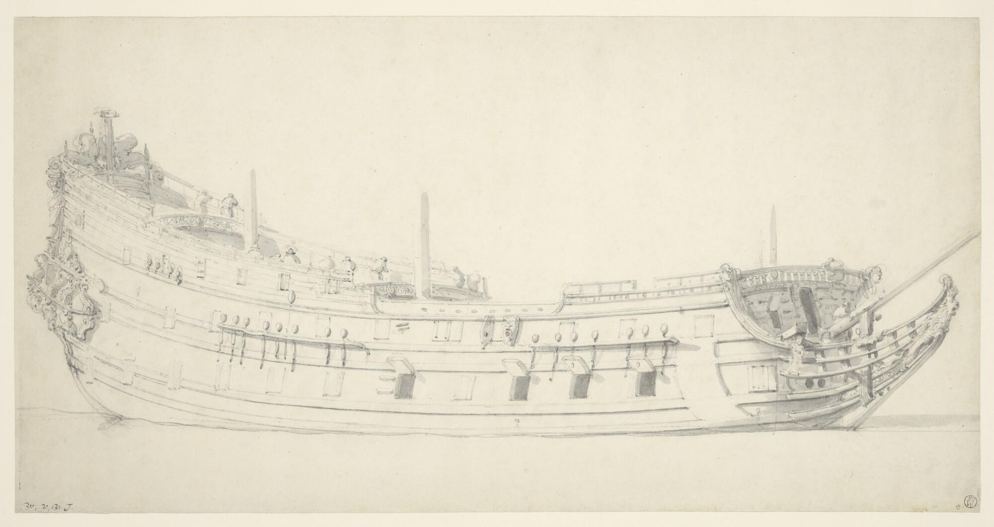 Een Nederlands oorlogsschip van ongeveer 60 stukken