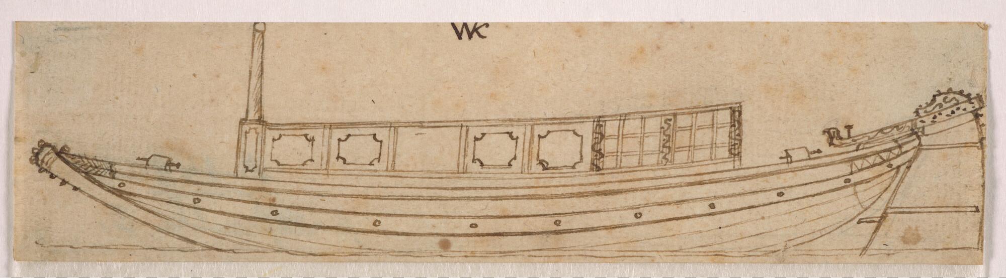 Tekening van een trekjacht of trekschuit
