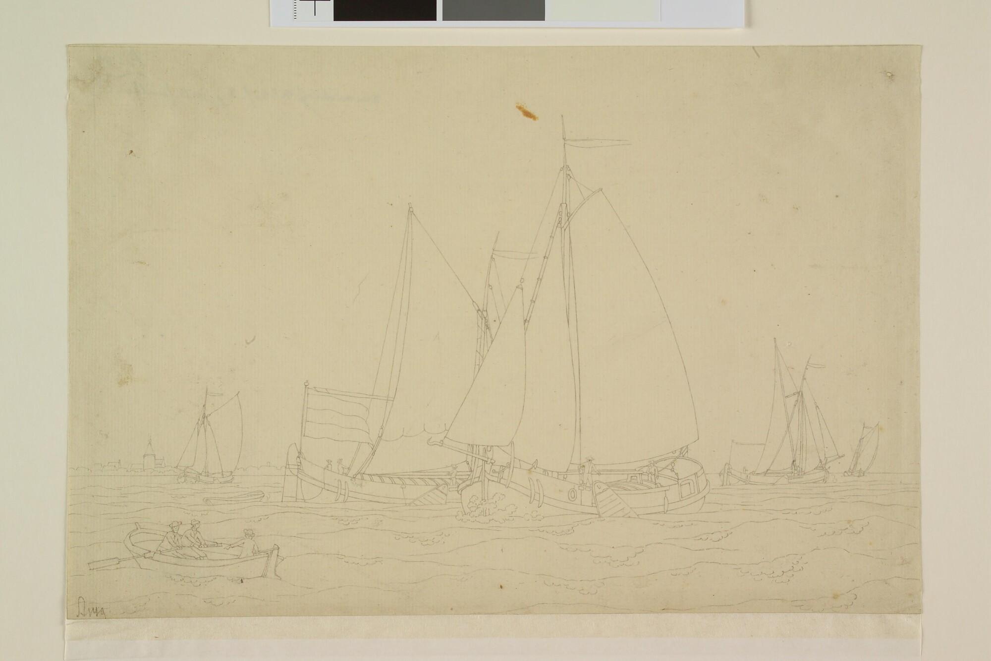 Een paviljoenpoon en een hektjalk op een binnenwater.