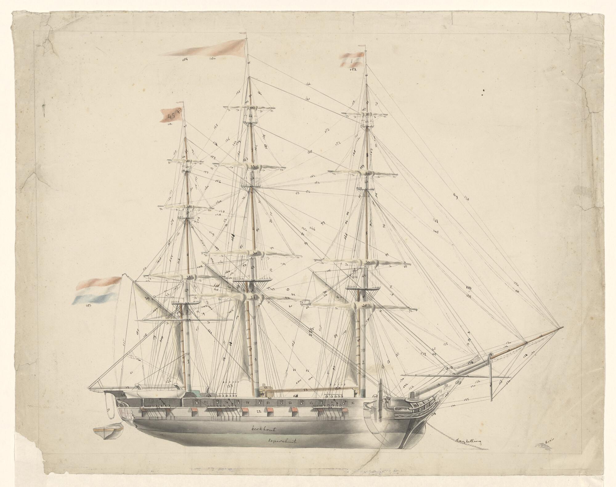 Tuigtekening van het fregat 'Elize'