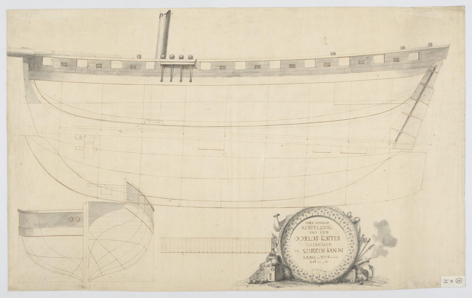 Lijnenplan van een oorlogskotter van 24 stukken kanon