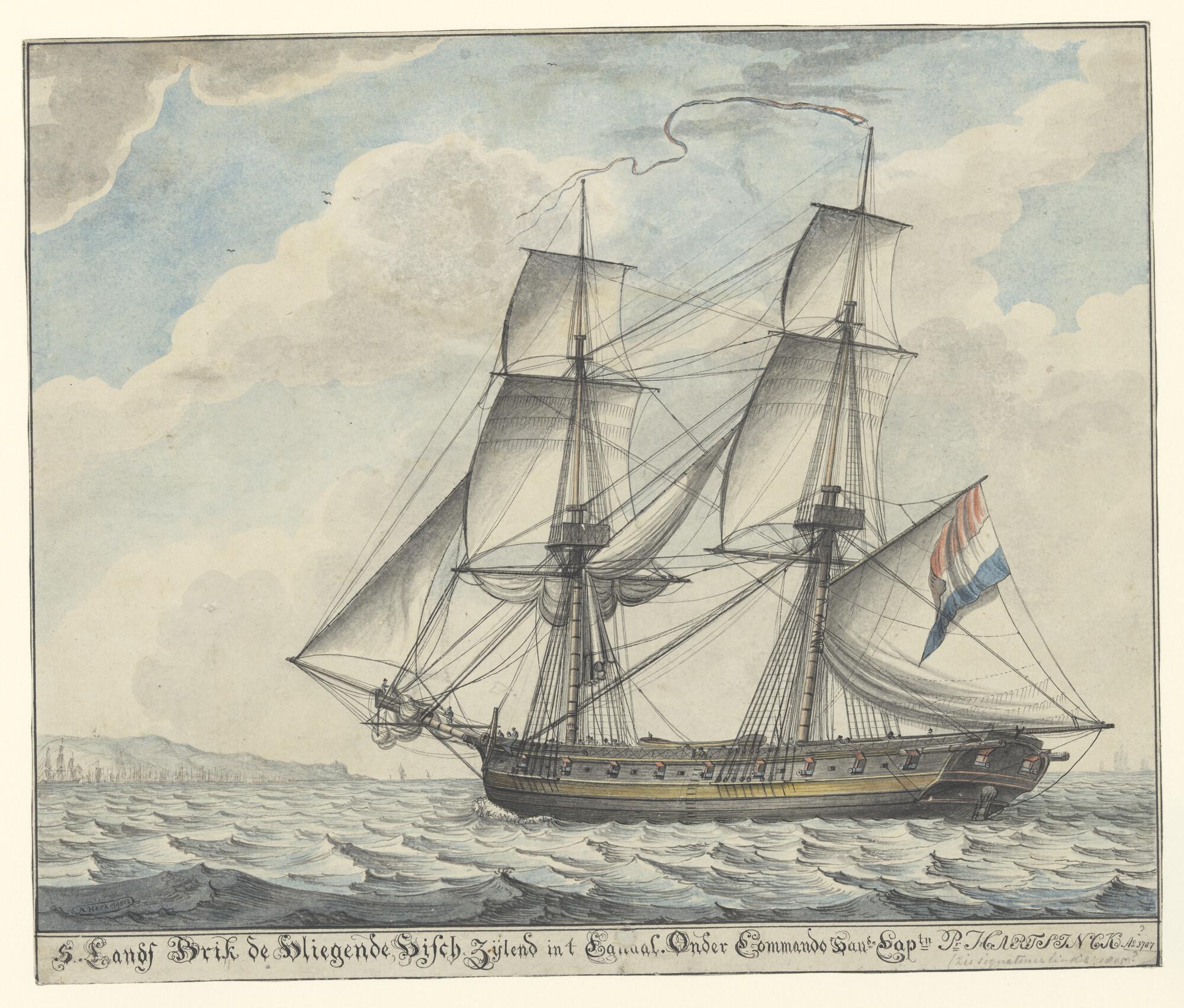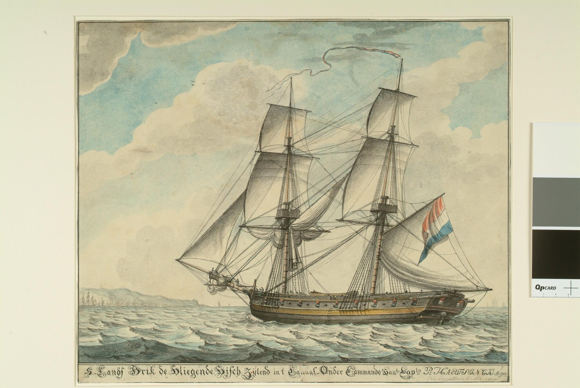 De oorlogsbrik "De Vliegende Visch" zeilend in het Kanaal.