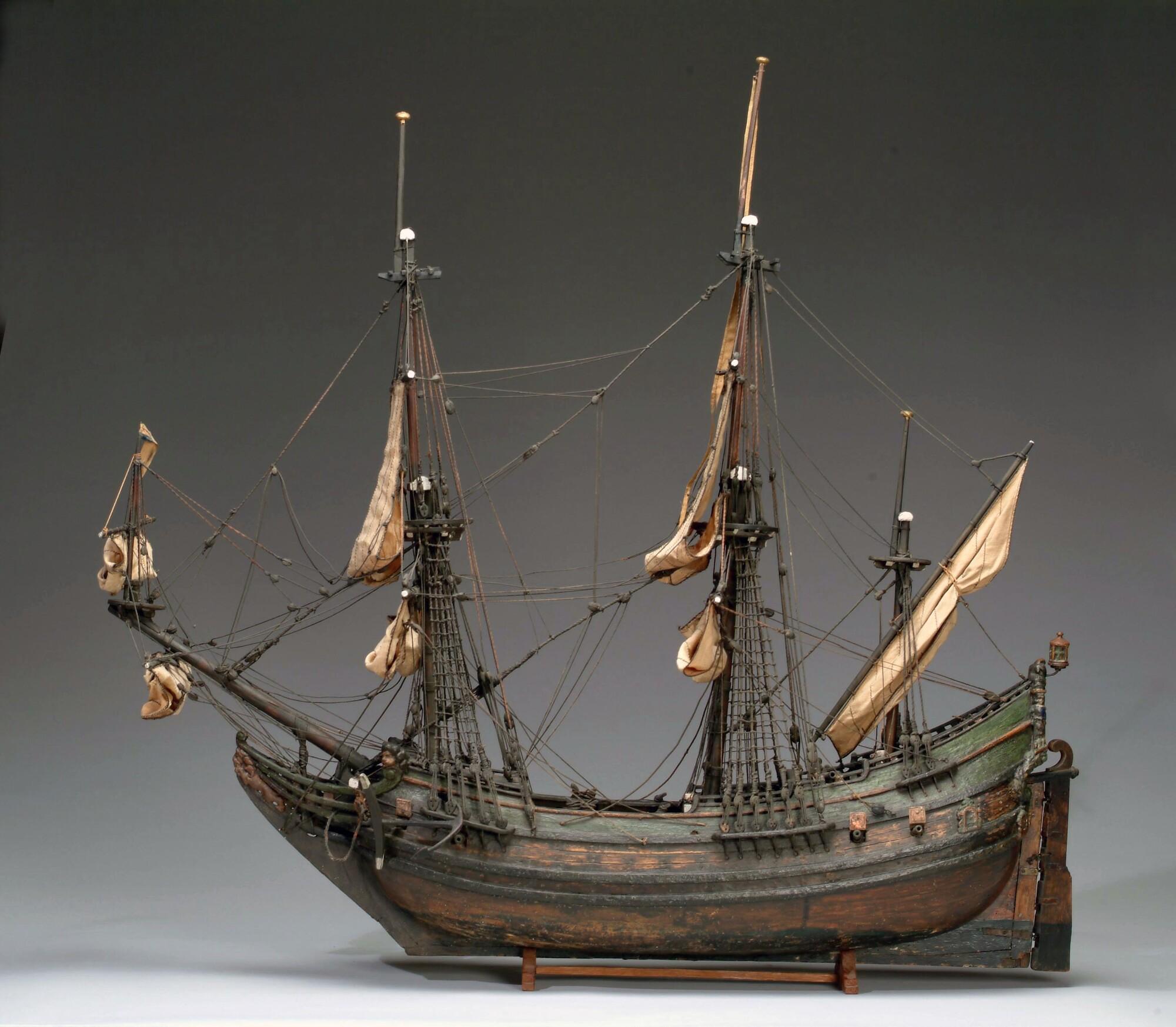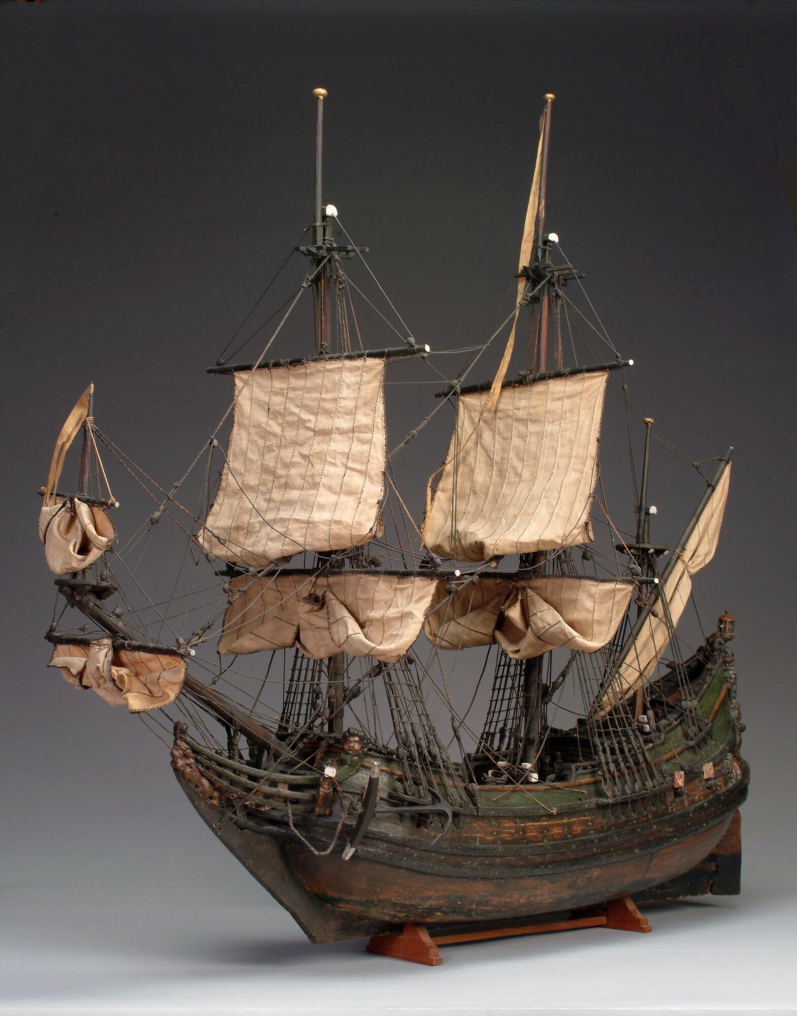 Getuigd model van een fluitschip, midden zeventiende eeuw.