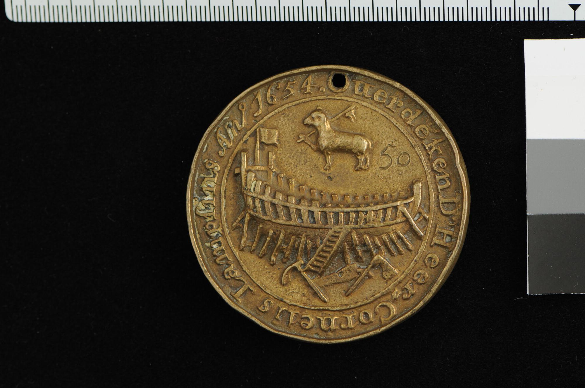 Draagpenning van het Groot Scheepmakersgilde te Vlissingen, 1654.