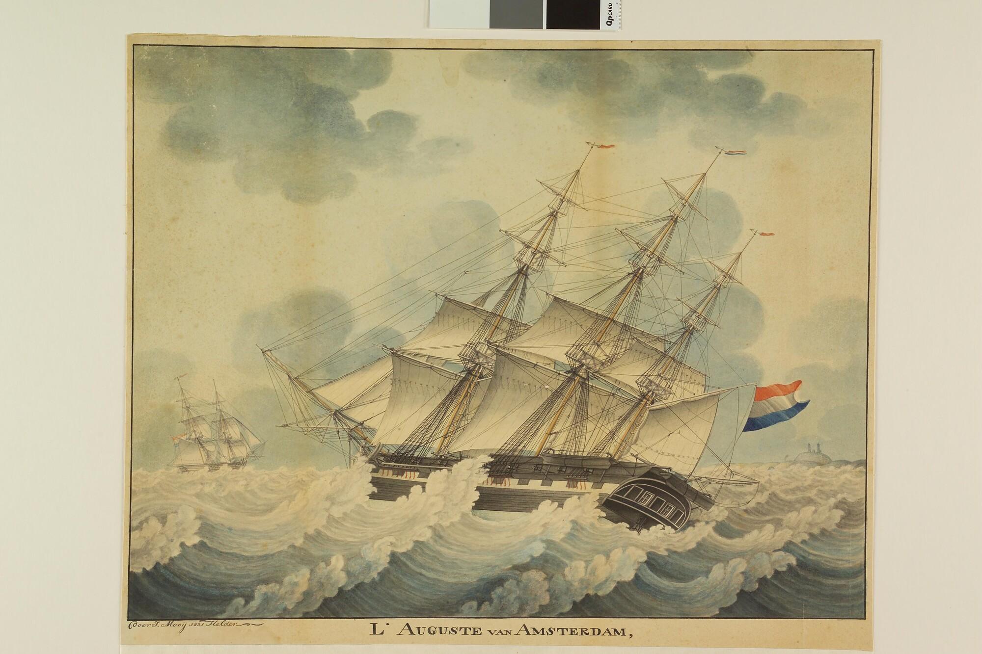 Het fregatschip 'L'Auguste' nabij Den Helder
