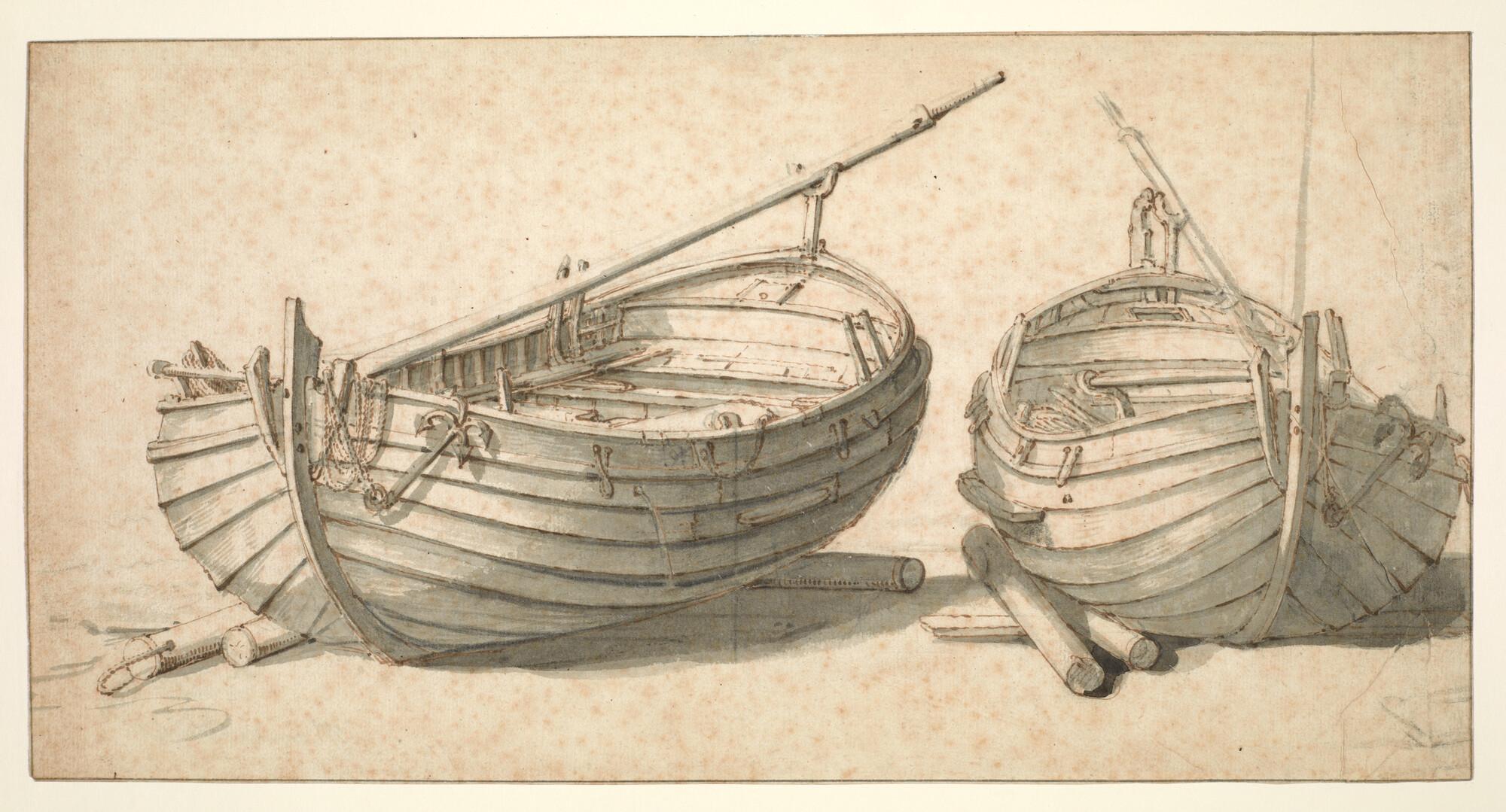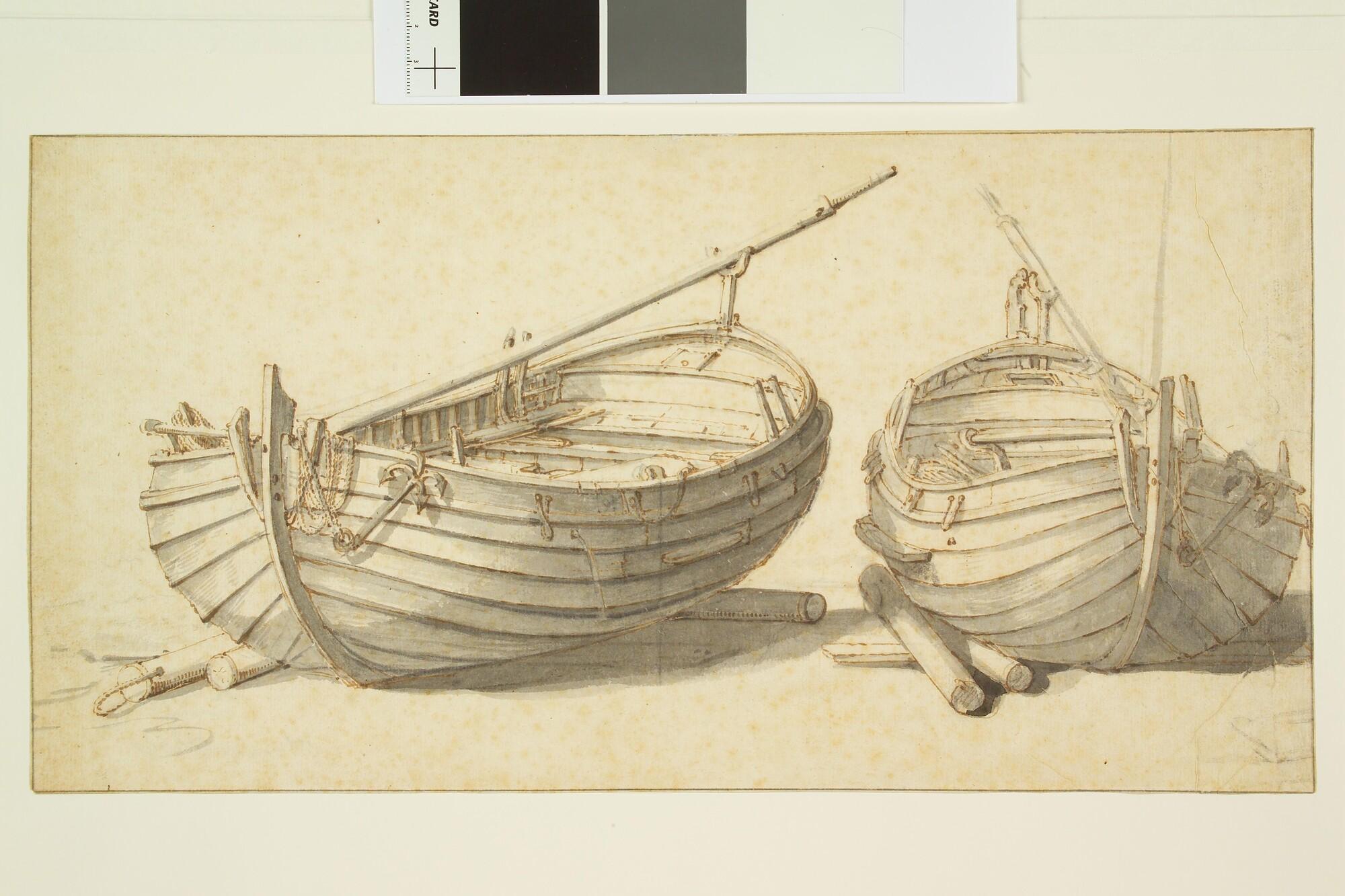 Twee visserspinken op het strand.