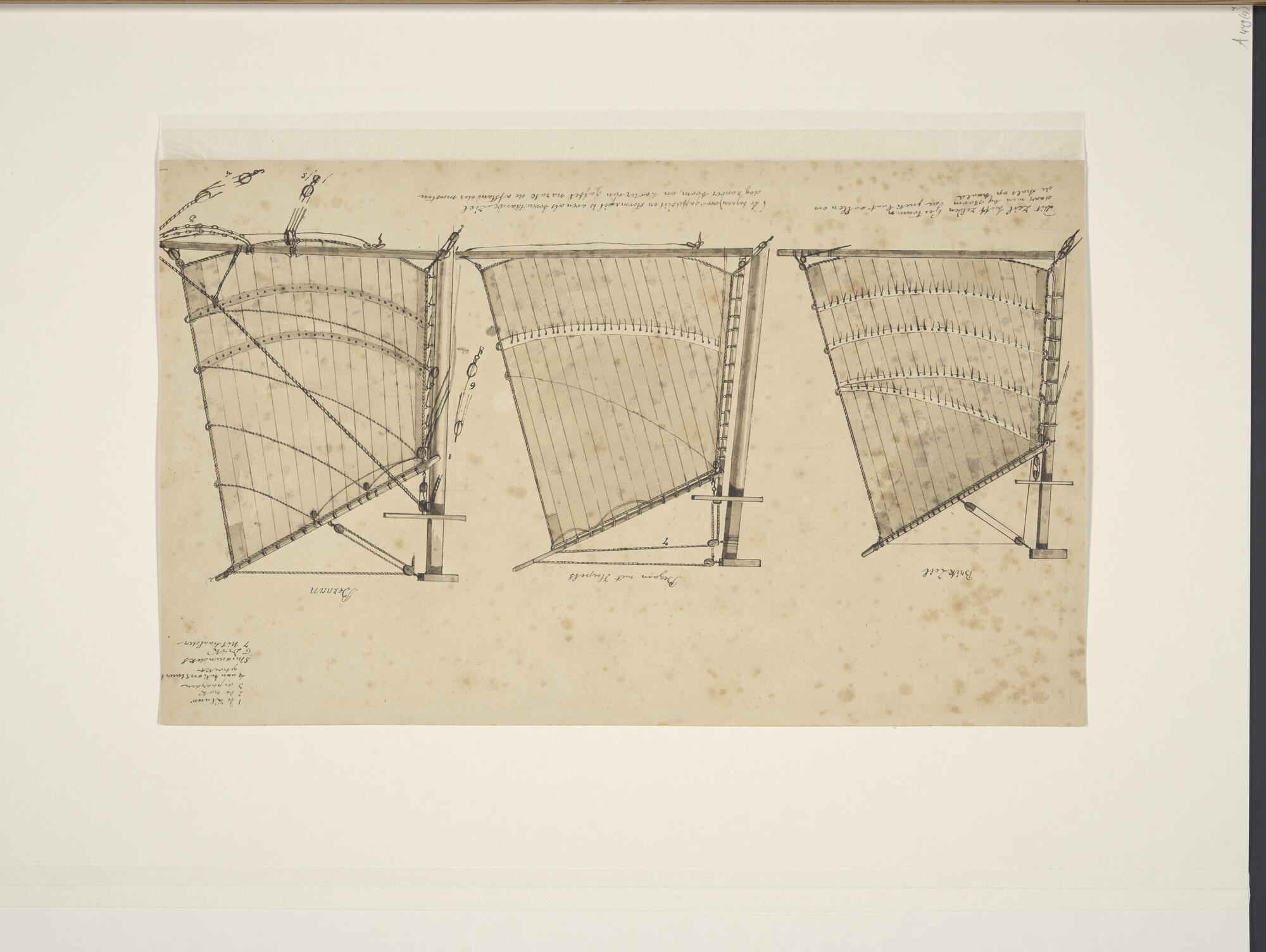 Tuigtekening, vermoedelijk gemaakt voor het boek 'Praktikale Zeevaartkunde' door P. le Comte, 1842.