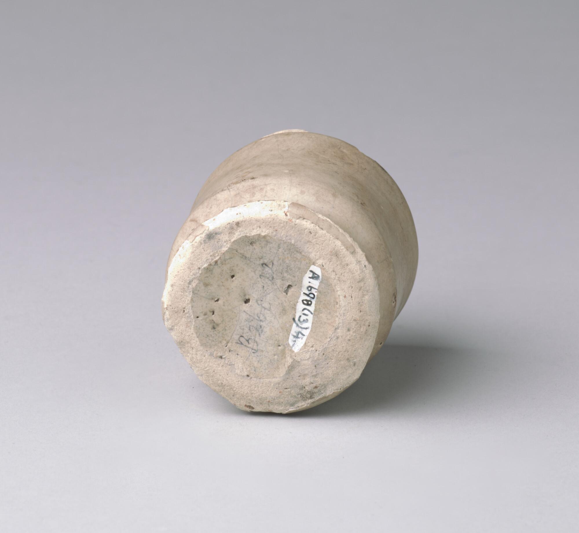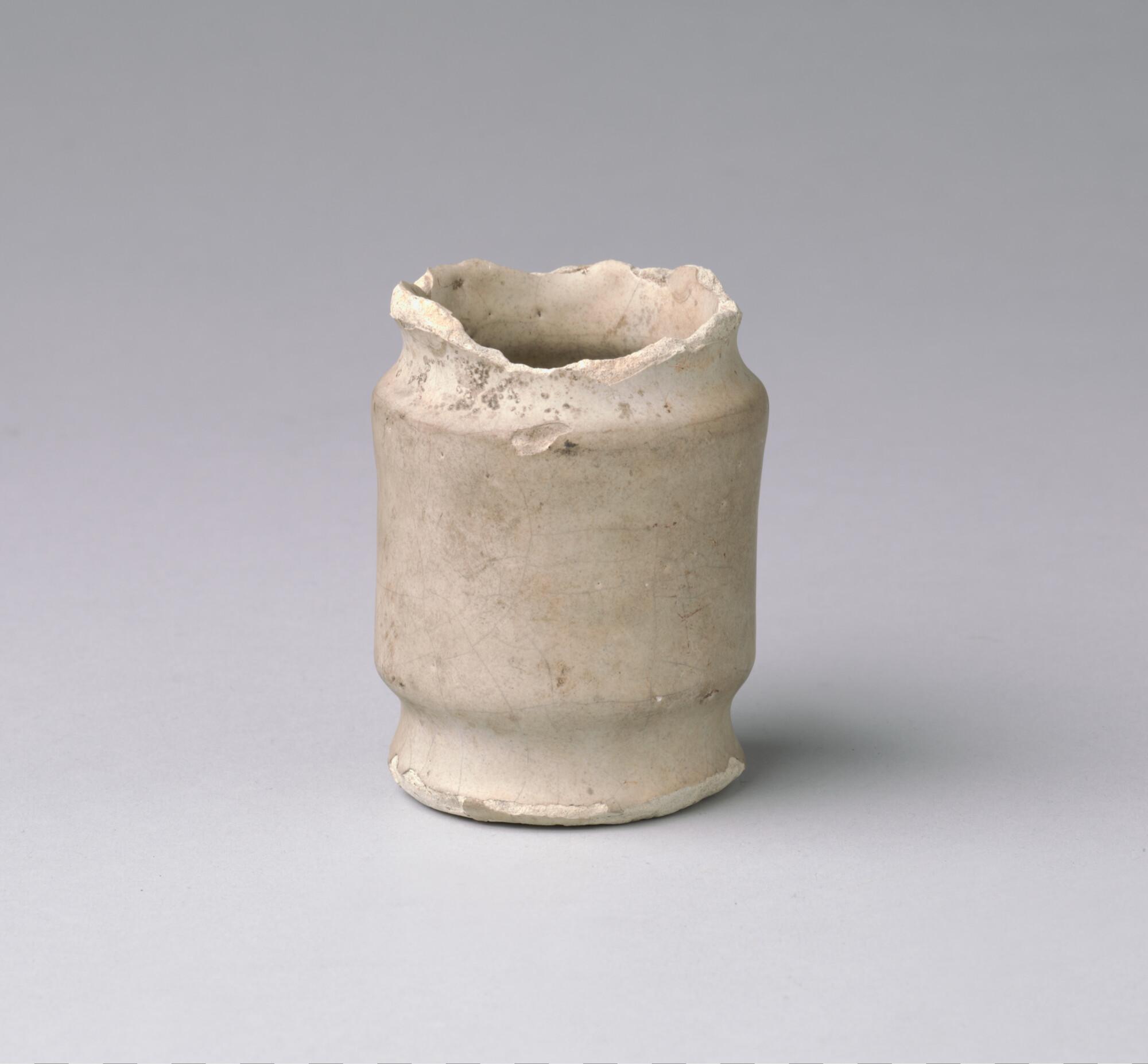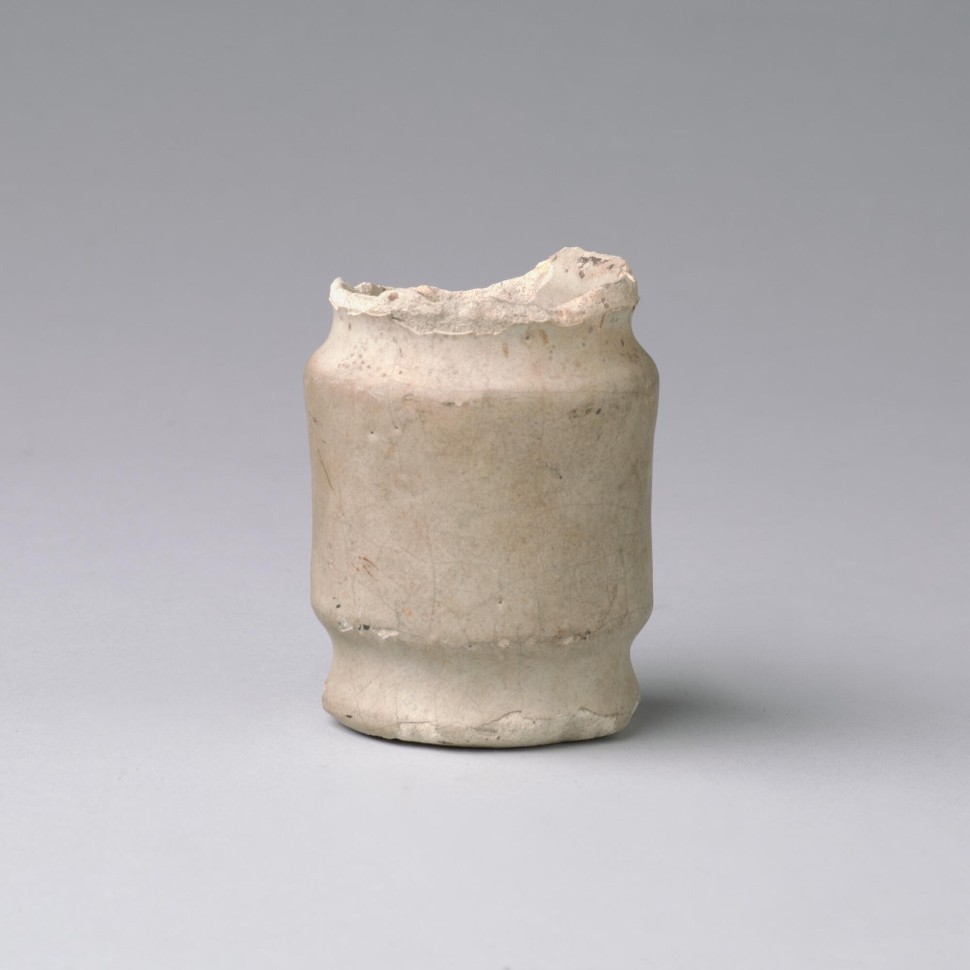 Zalfpot, z.g. Albarello-model. Afkomstig uit het wrak van de "Brederode", in 1658 gezonken tijdens de Slag in de Sont.