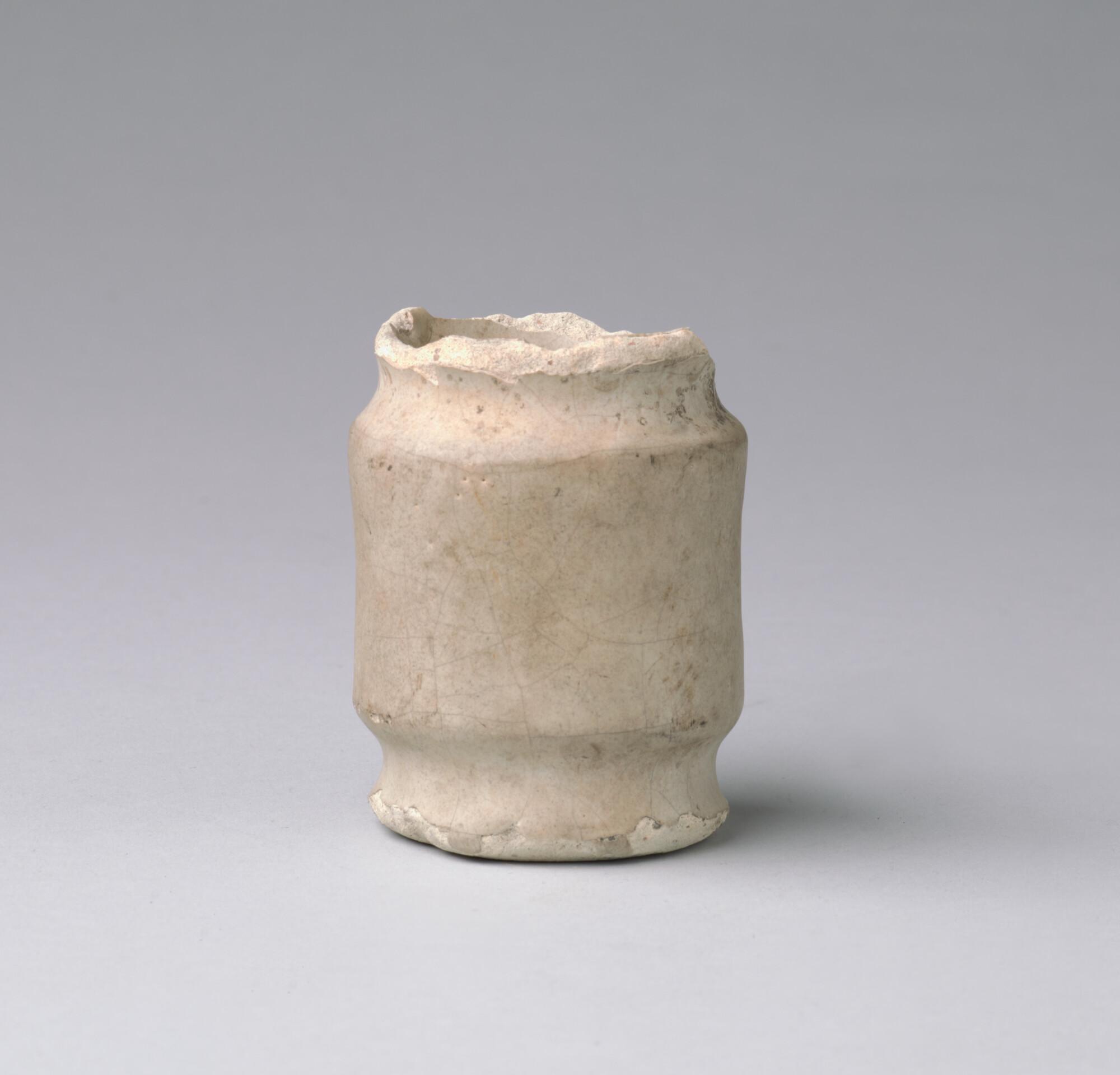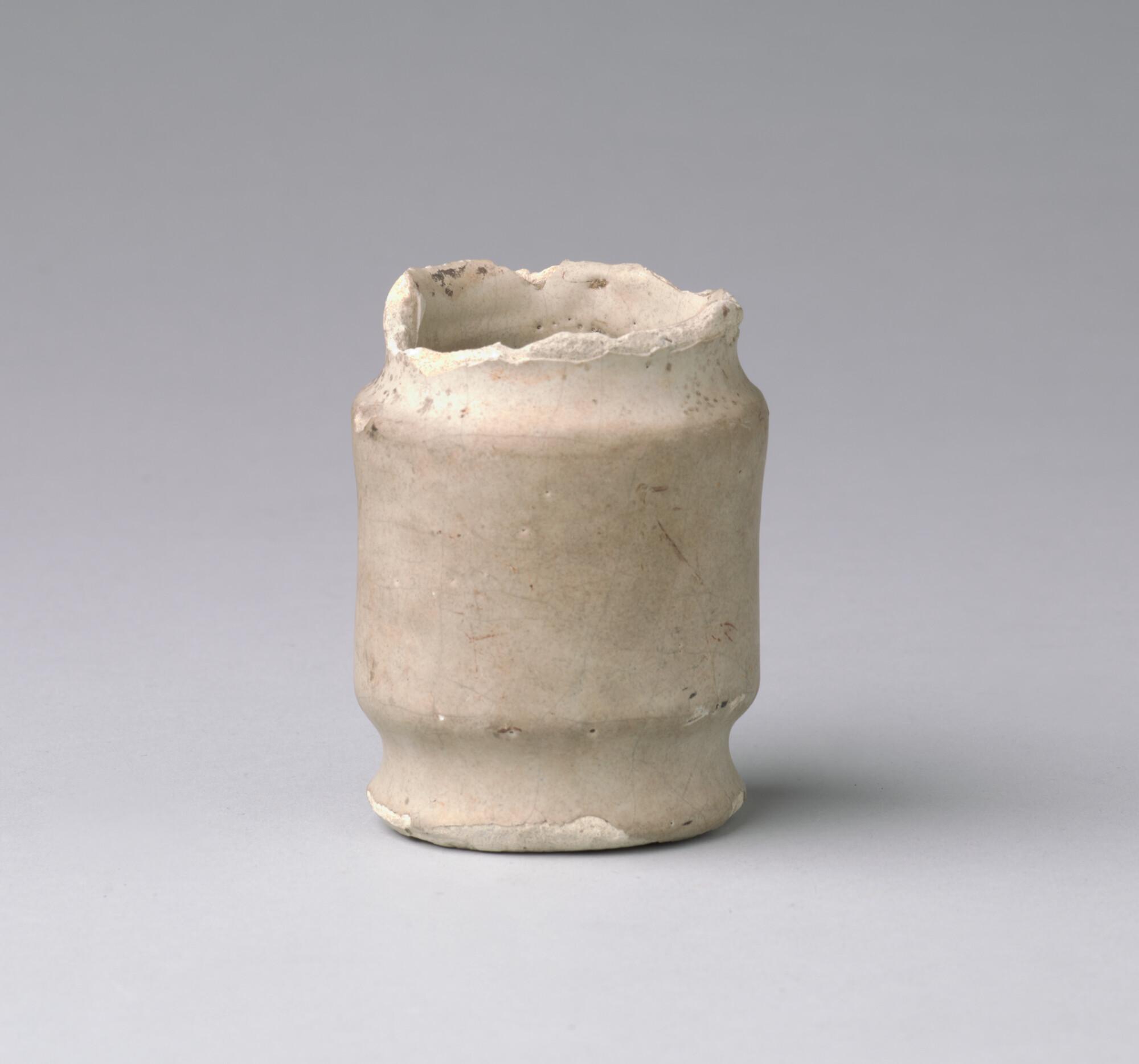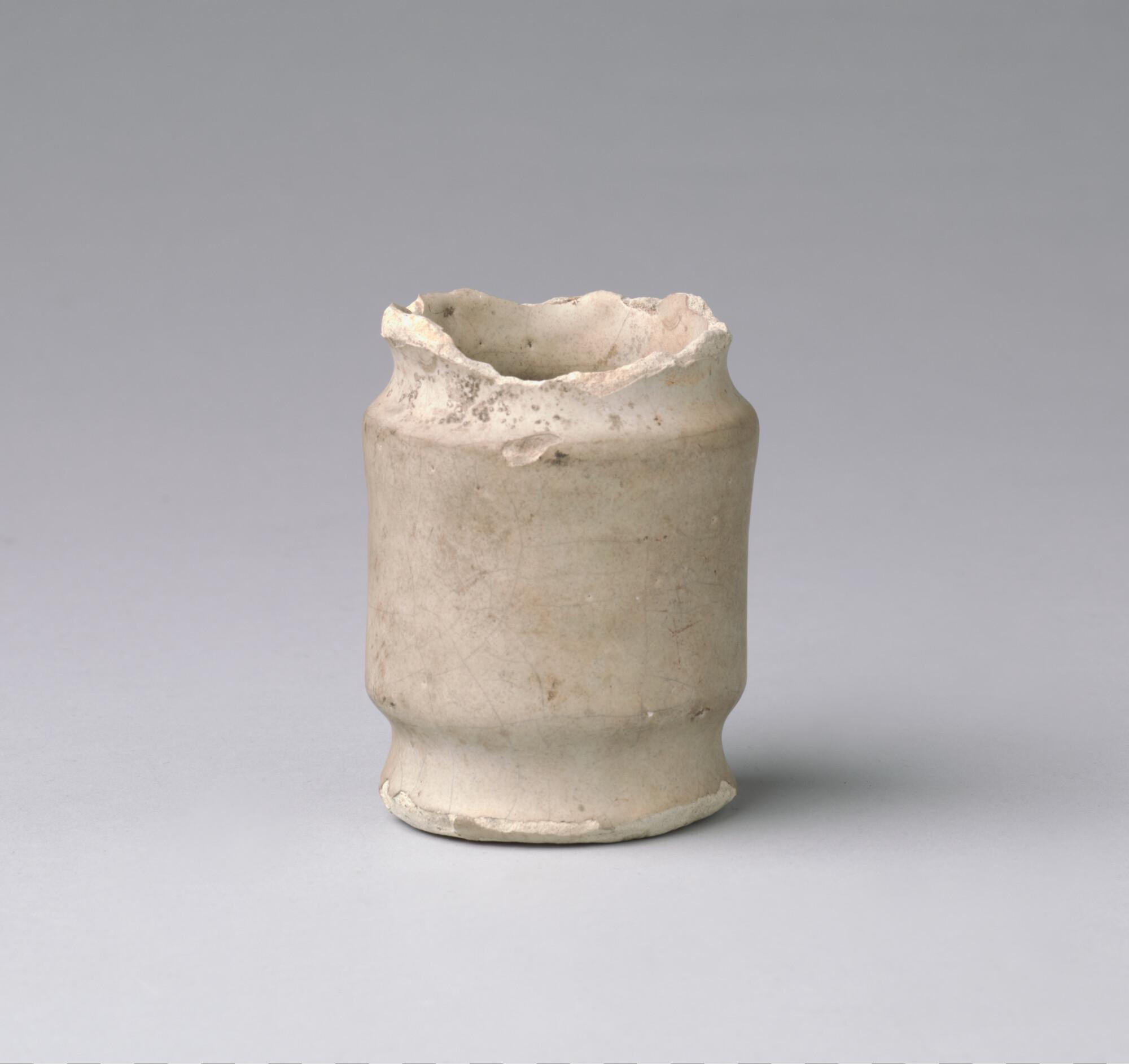 Zalfpot, z.g. Albarello-model. Afkomstig uit het wrak van de "Brederode", in 1658 gezonken tijdens de Slag in de Sont.