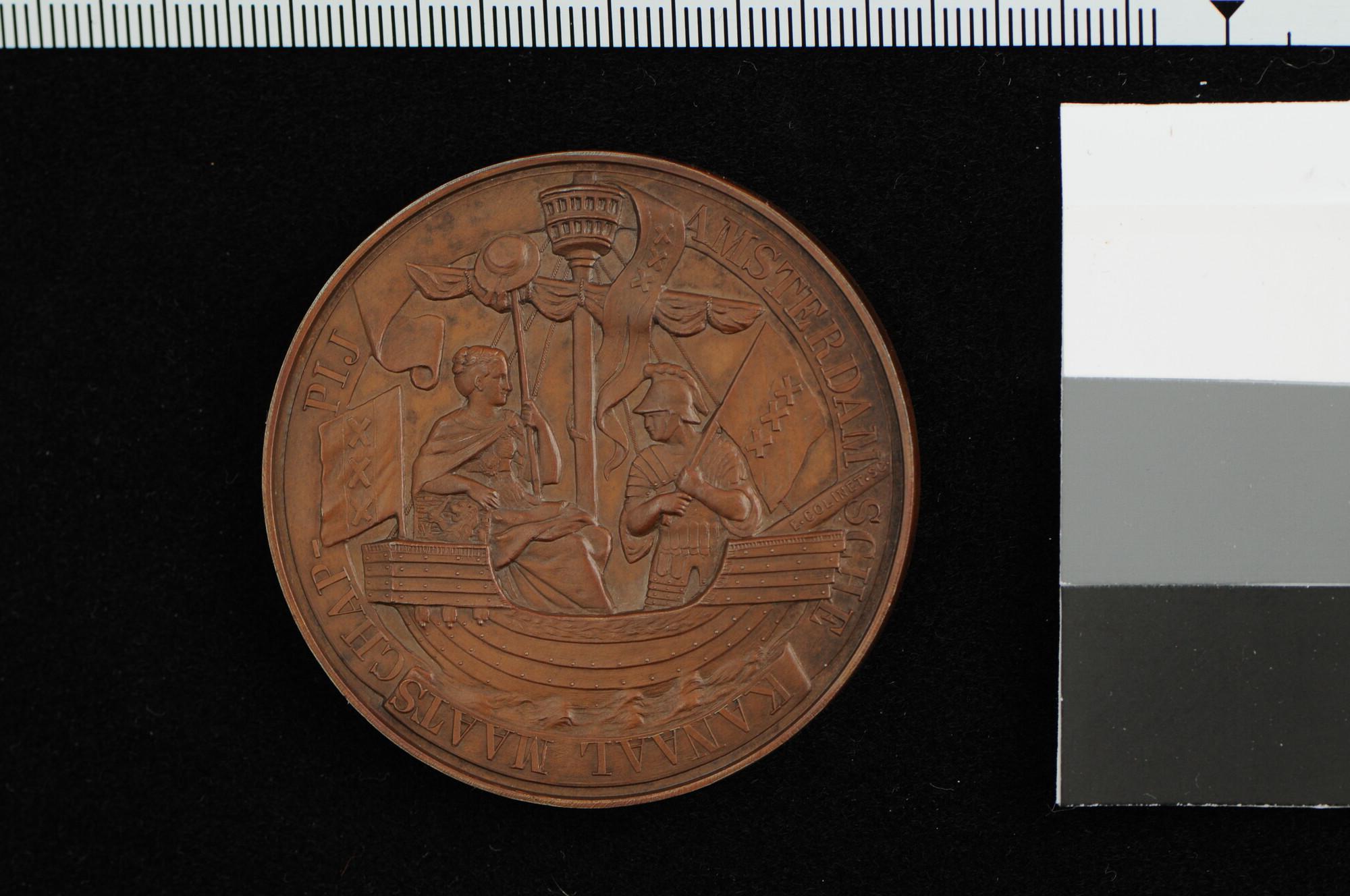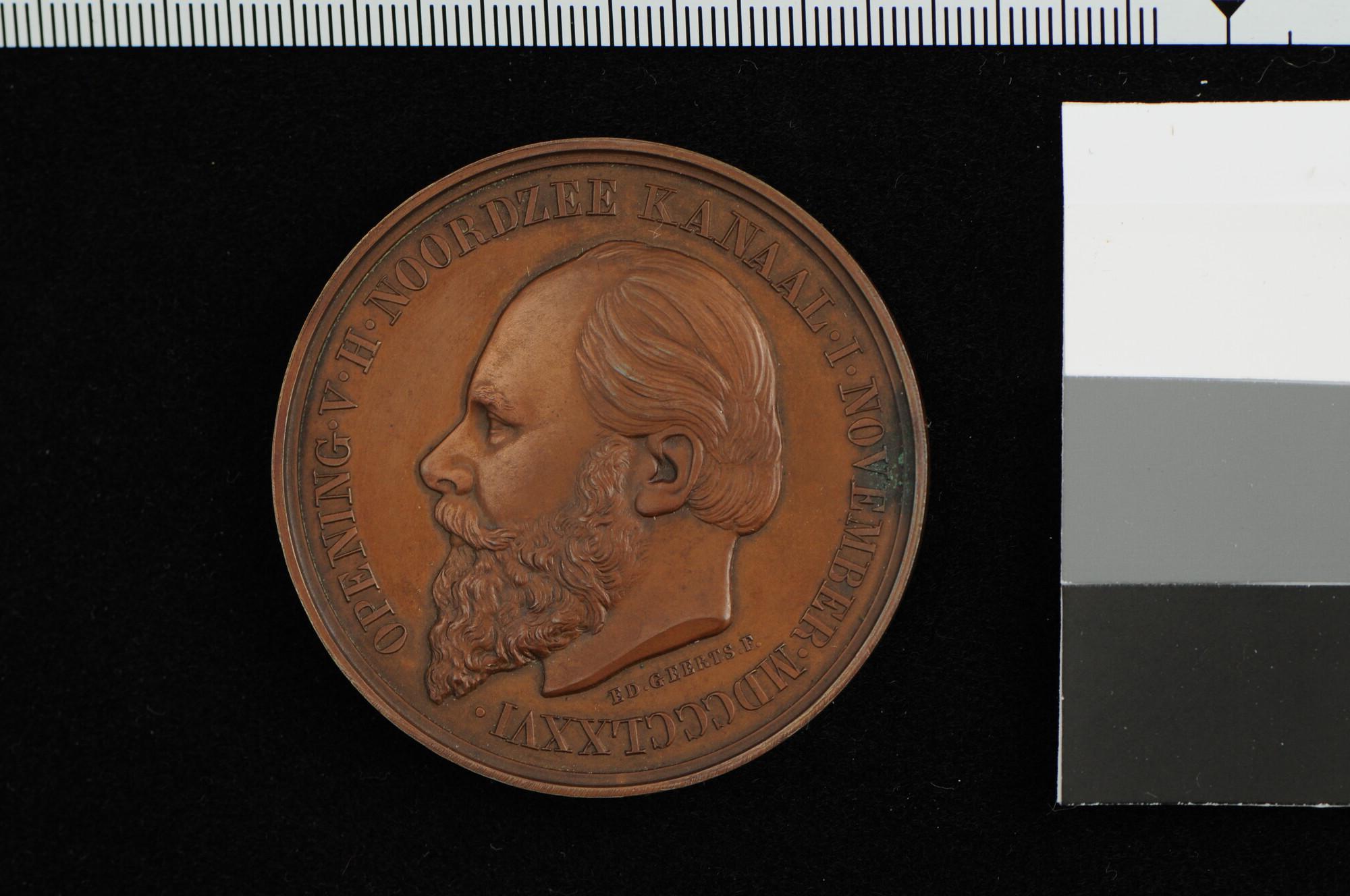 Penning, ter ere van Willem III, koning der Nederlanden, op de opening van het Noordzeekanaal. Geslagen op last van de Amsterdamsche Kanaal Maatschappij, 1876