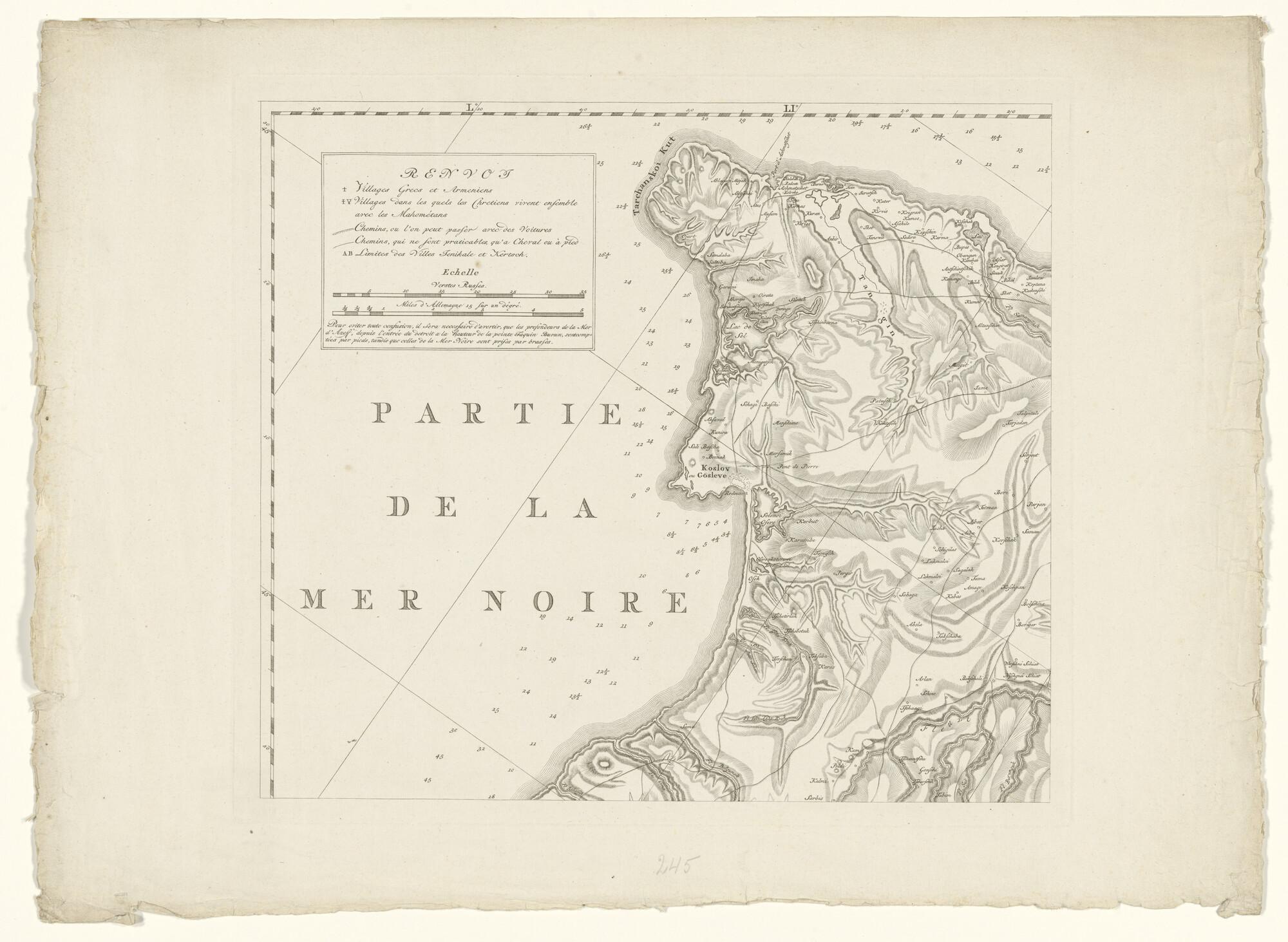 Kaart van de Krim, door J.H. van Kinsbergen, in vier delen: Noord- Westelijk deel. Gegraveerd door N. v.d. Meer, uitgegeven door H. Frieseman, Amsterdam, 1787.