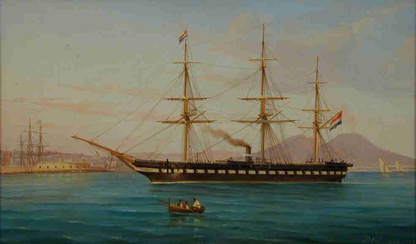Het fregat met stoomvermogen Zr.Ms. Adolf, Hertog van Nassau op een rede in de Middellandse Zee