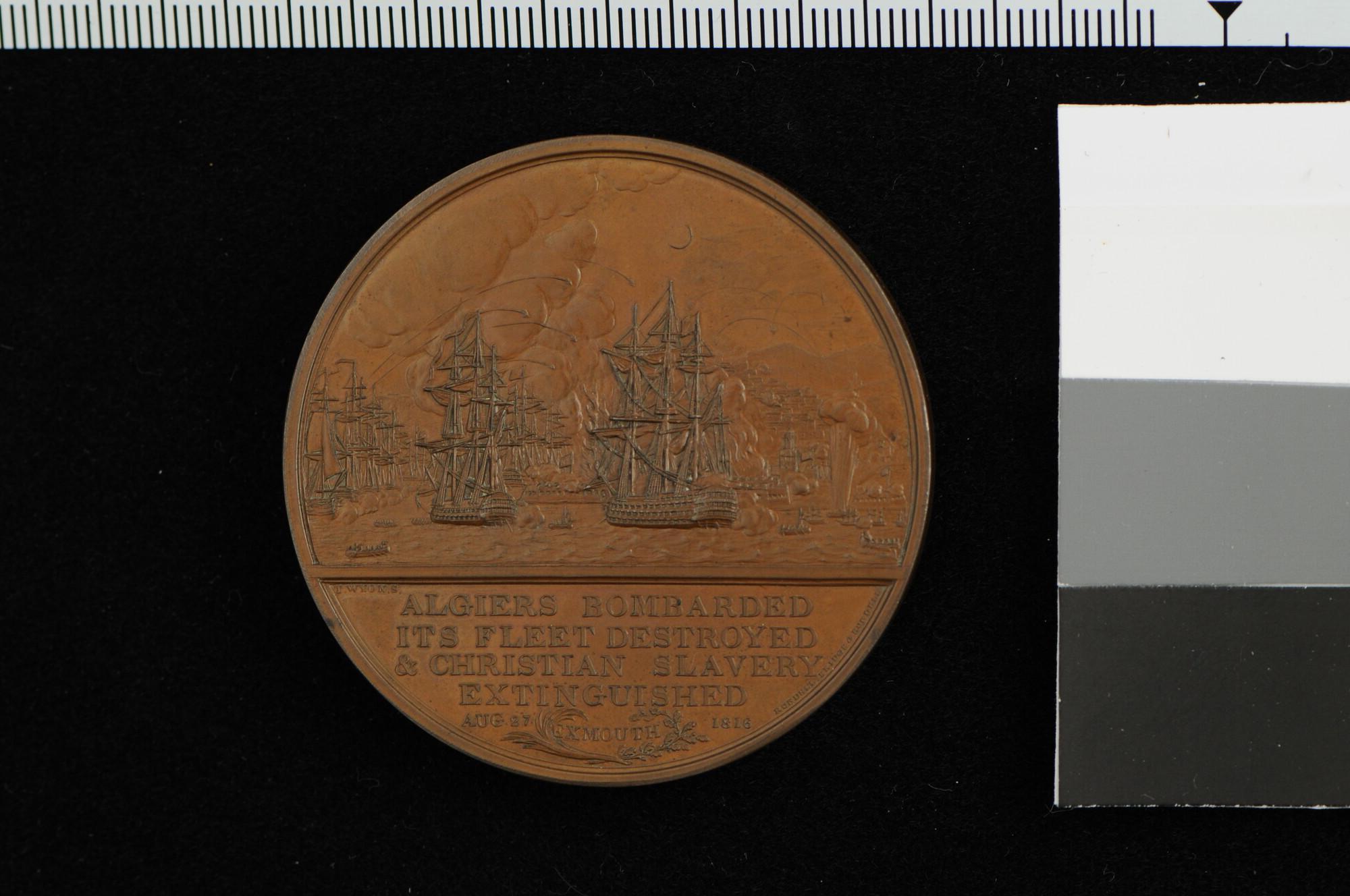 Engelse penning geslagen ter herinnering aan het Brits-Nederlandse bombardement van Algiers, 1816.