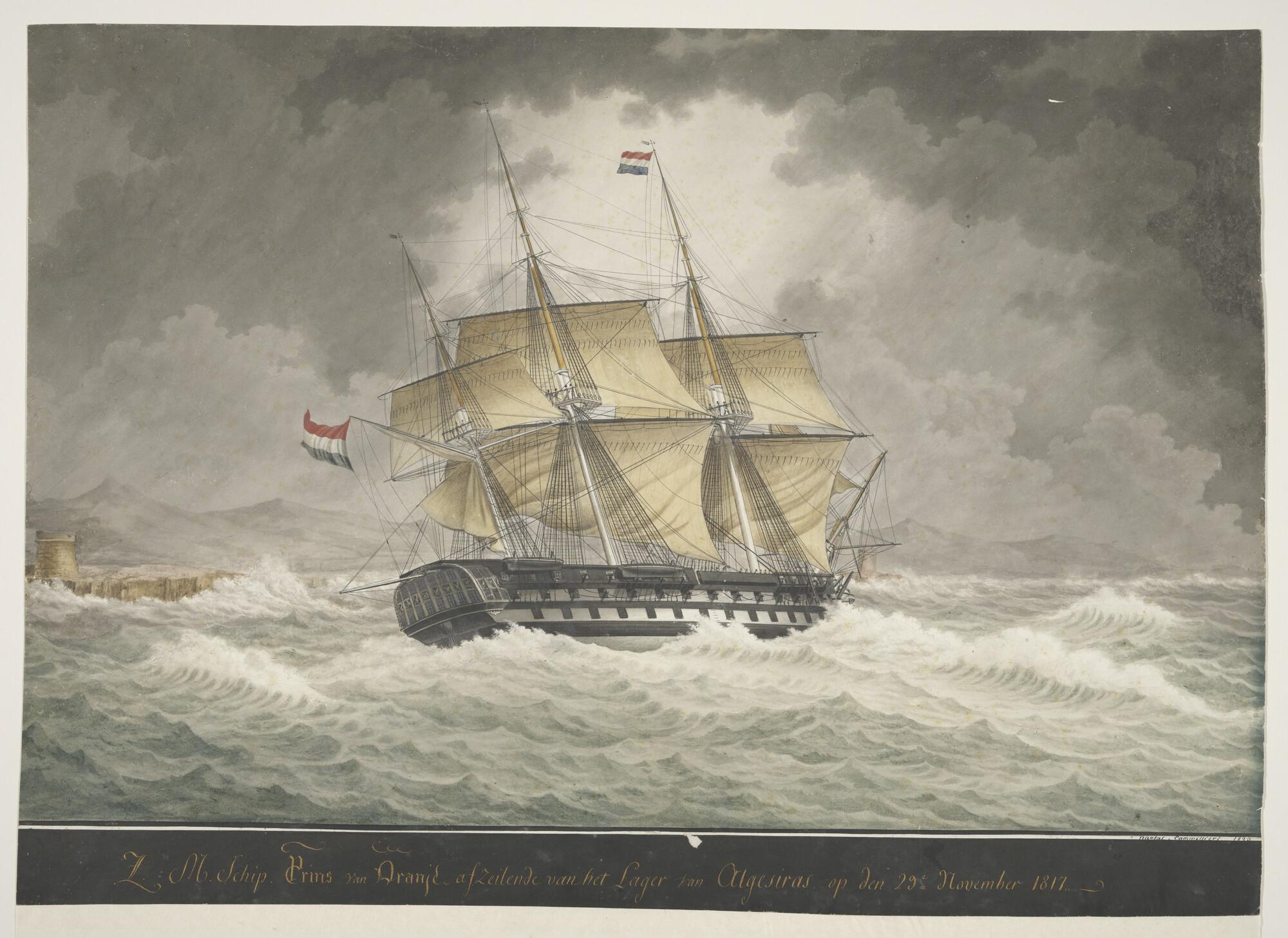 Het fregat Zr.Ms. Prins van Oranje bij Algeciras