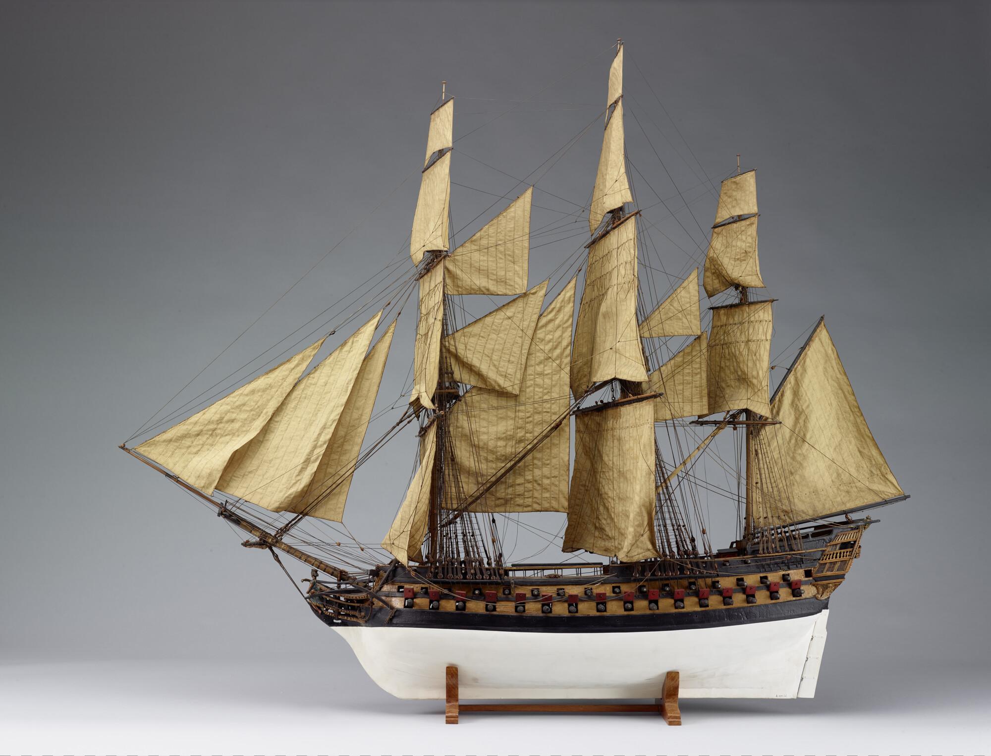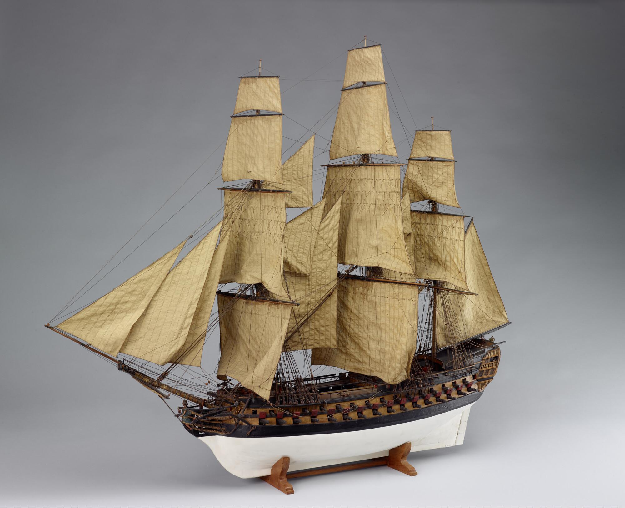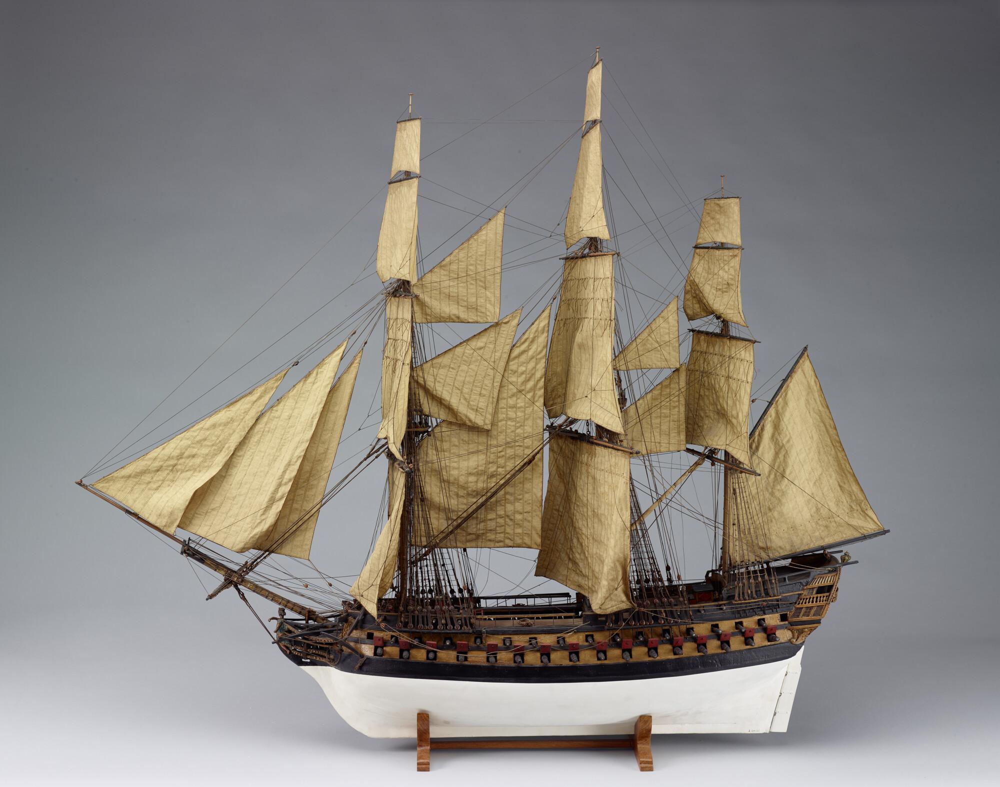 Getuigd model van een oorlogsschip van 86 stukken.