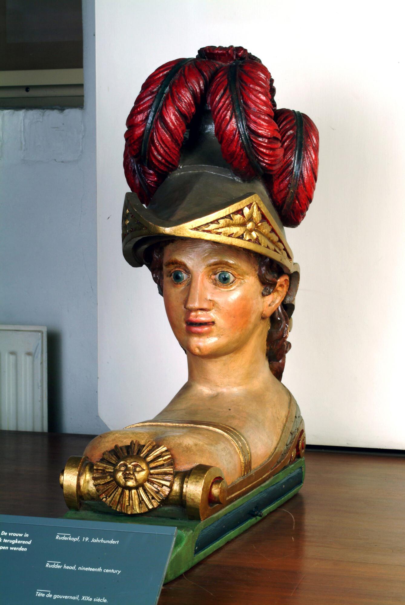 Roerkop, voorstellend een vrouwenhoofd met een helm