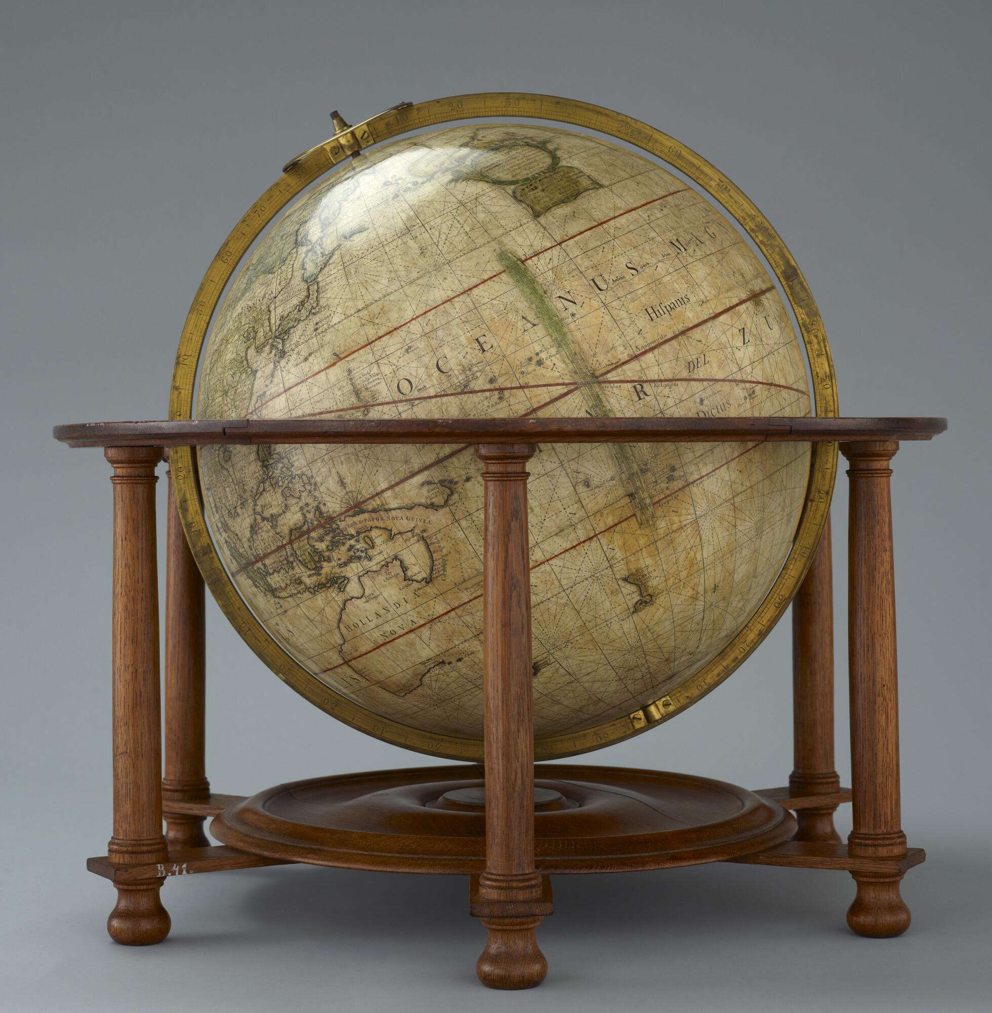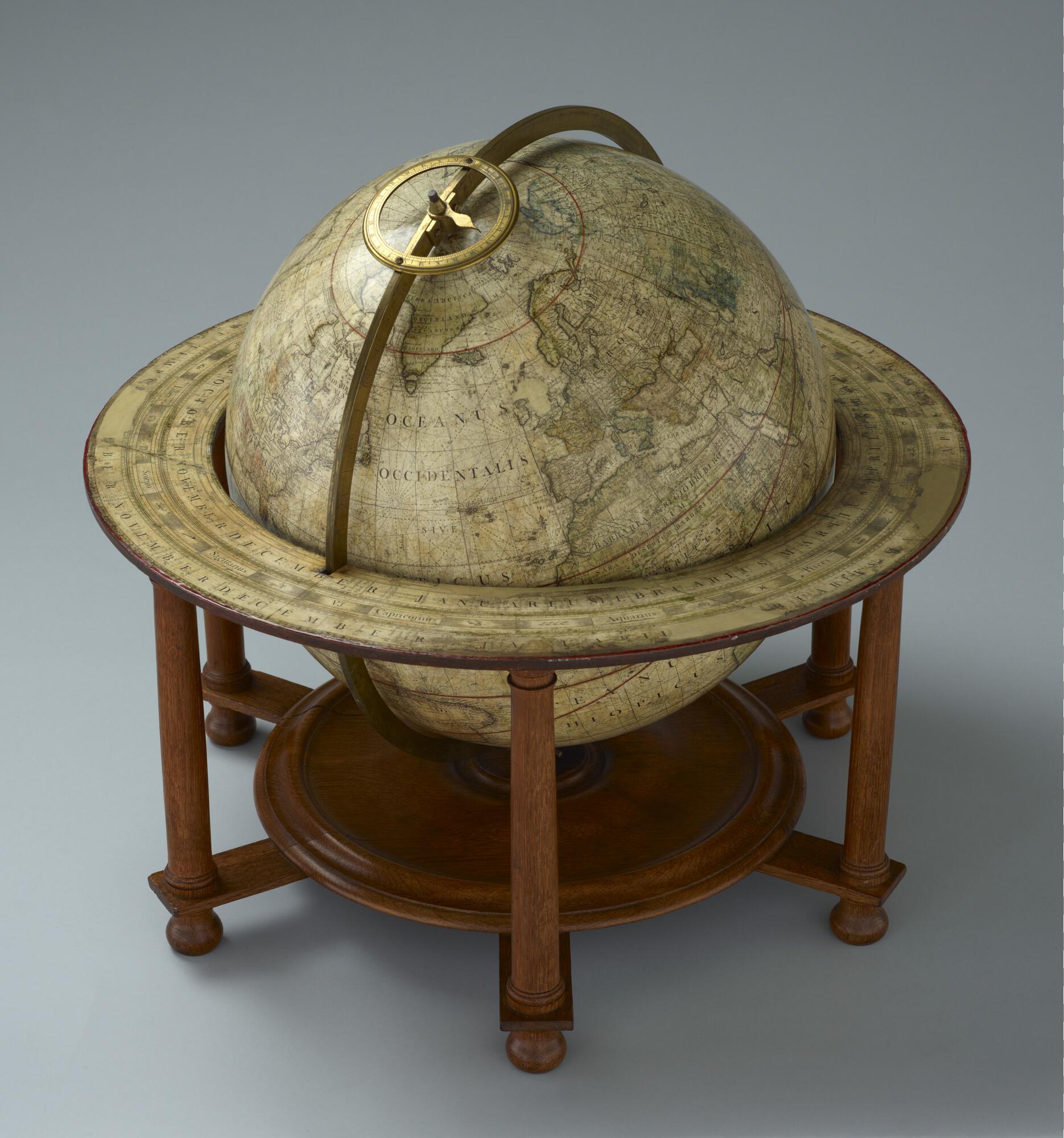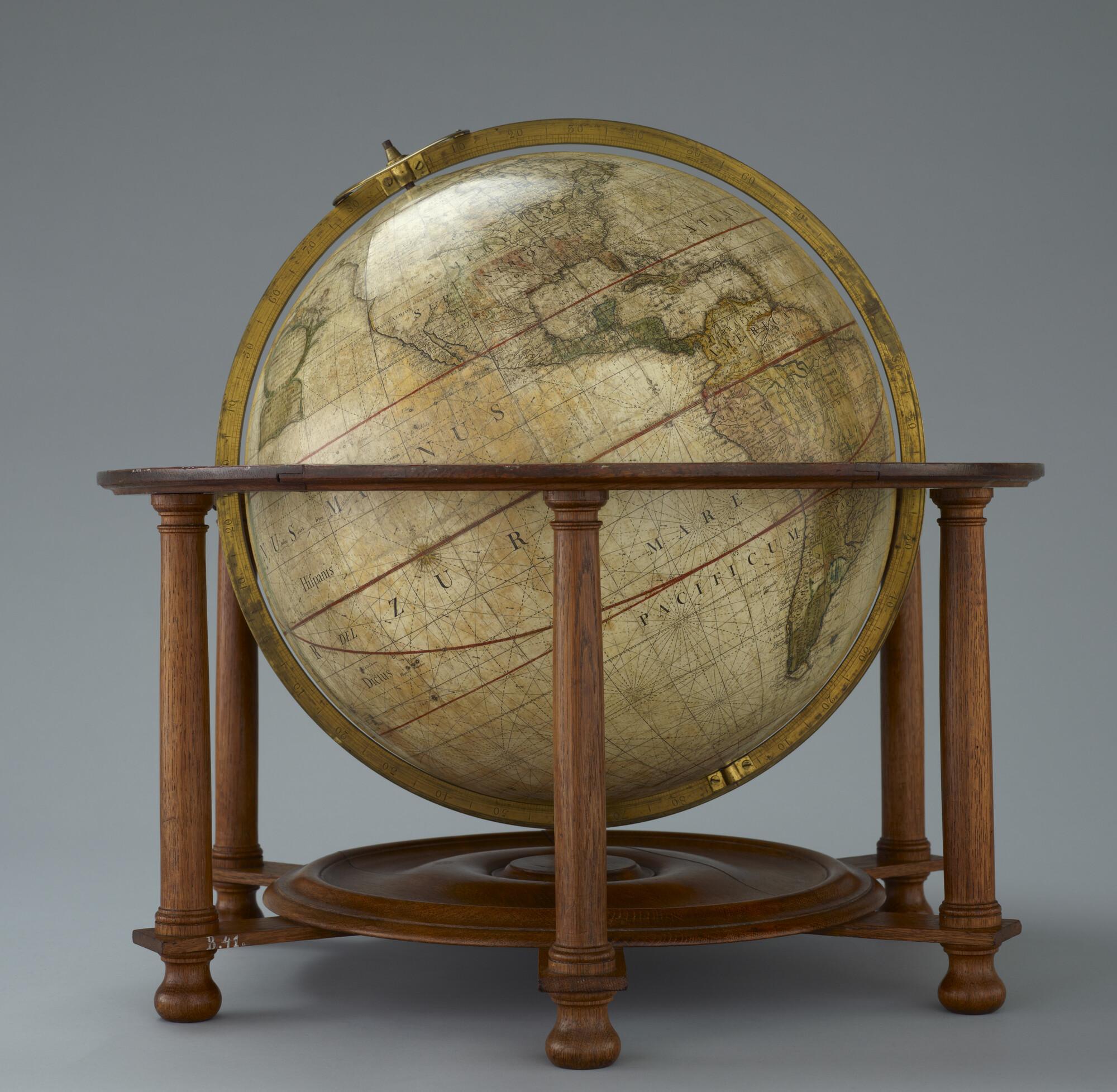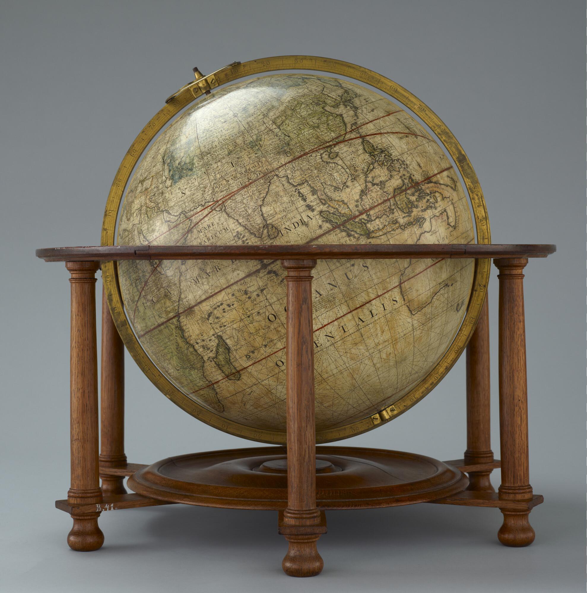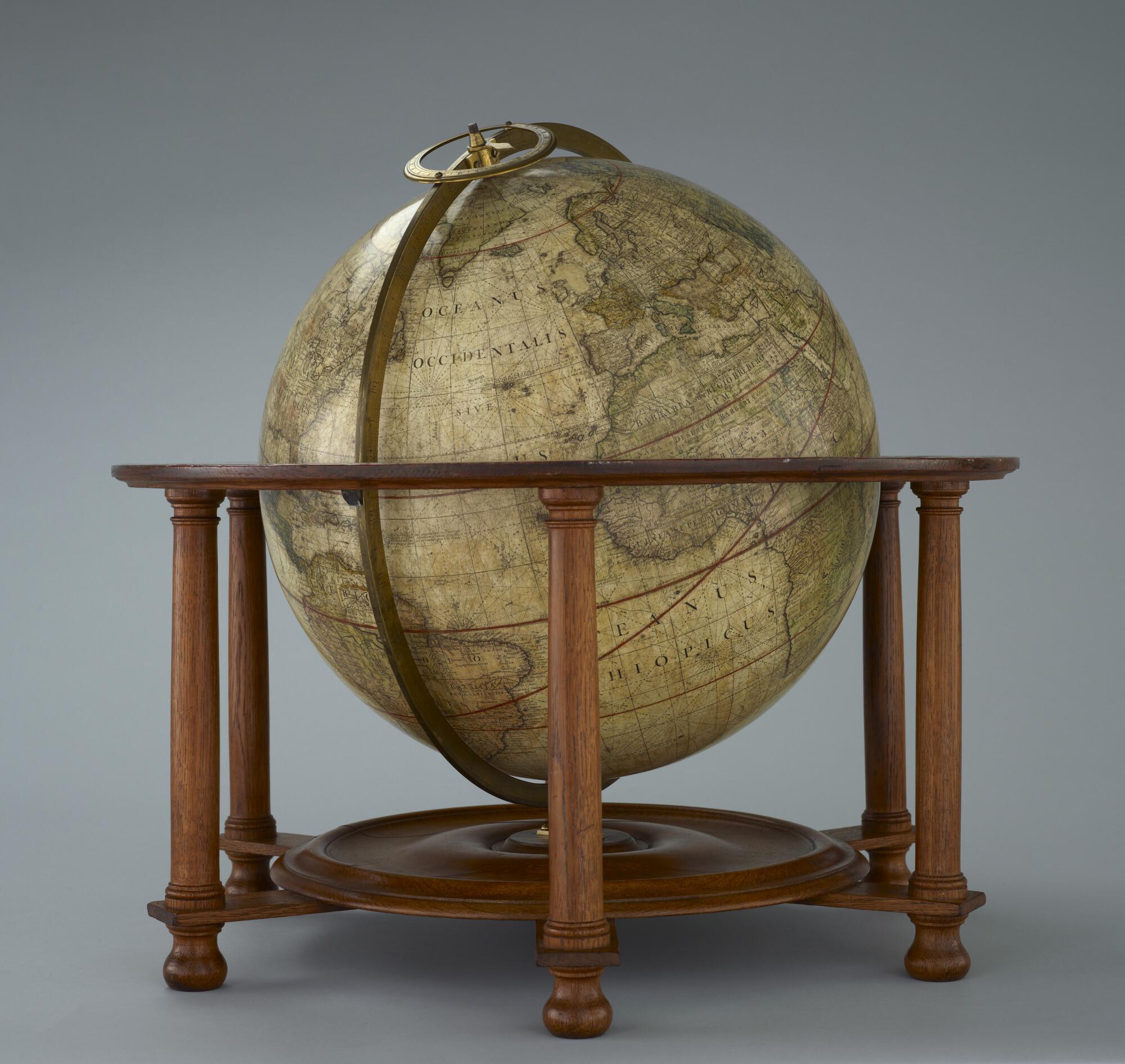 Aardglobe van 41,5 cm doorsnede van John Senex uit ca. 1735, in de uitgave van Benjamin Martin, 1757 (schaal 1:30.500.000).