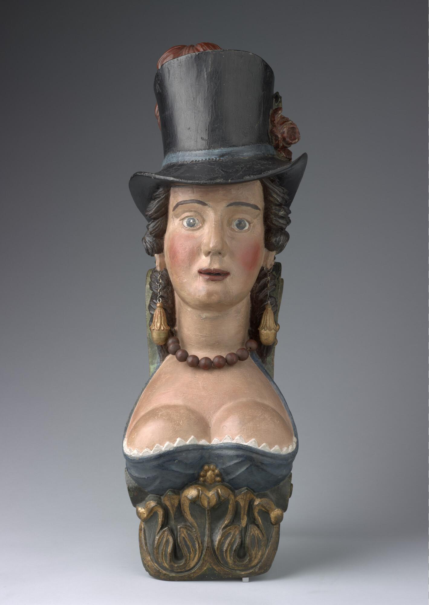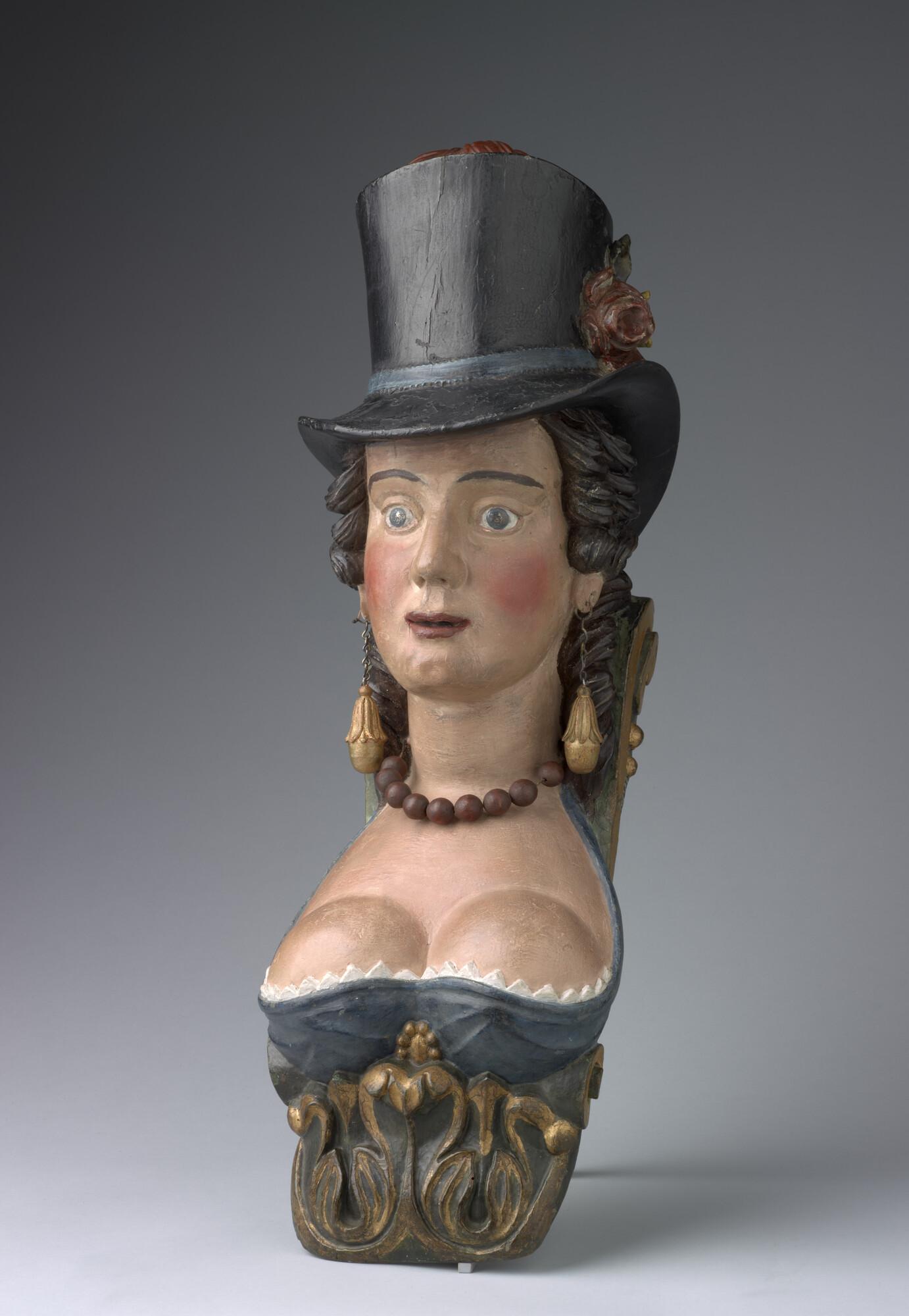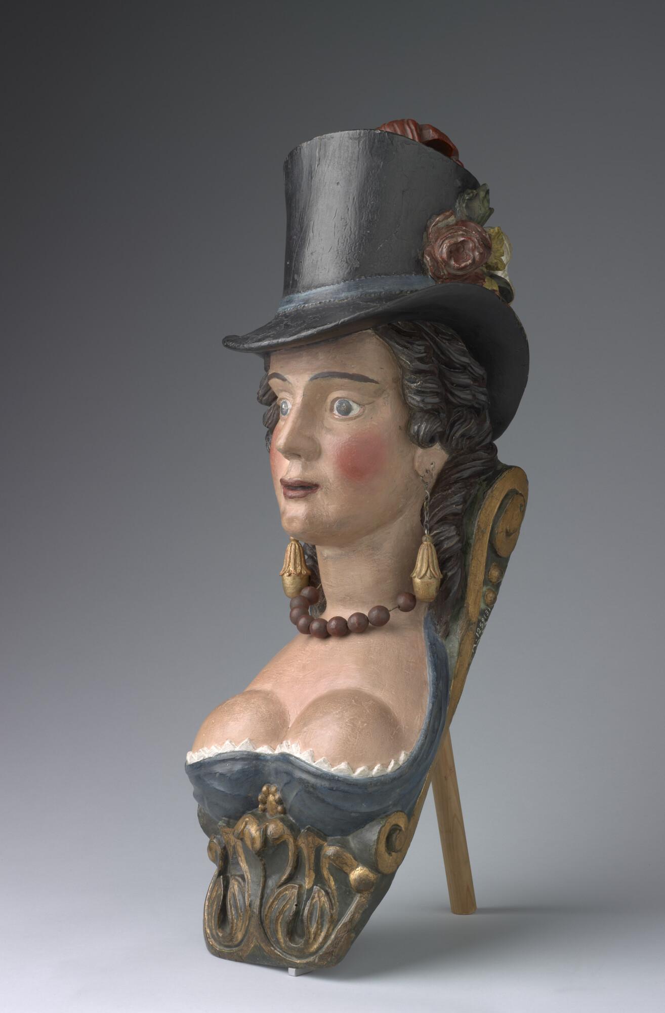 Roerkop in de vorm van een vrouwenhoofd met een hoge hoed, 'Amazone'