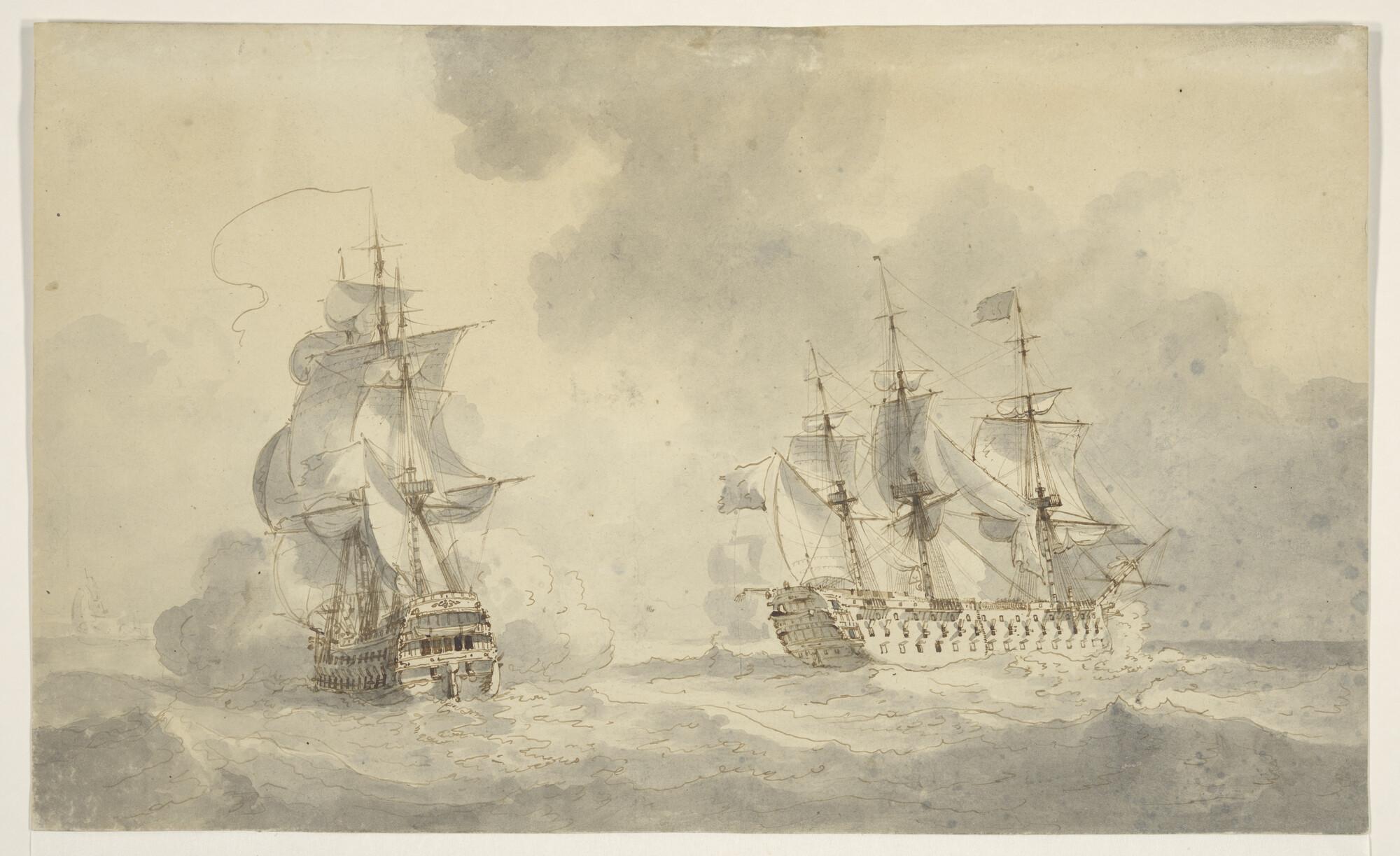 Gevecht tussen een Engels en een Frans oorlogsschip.