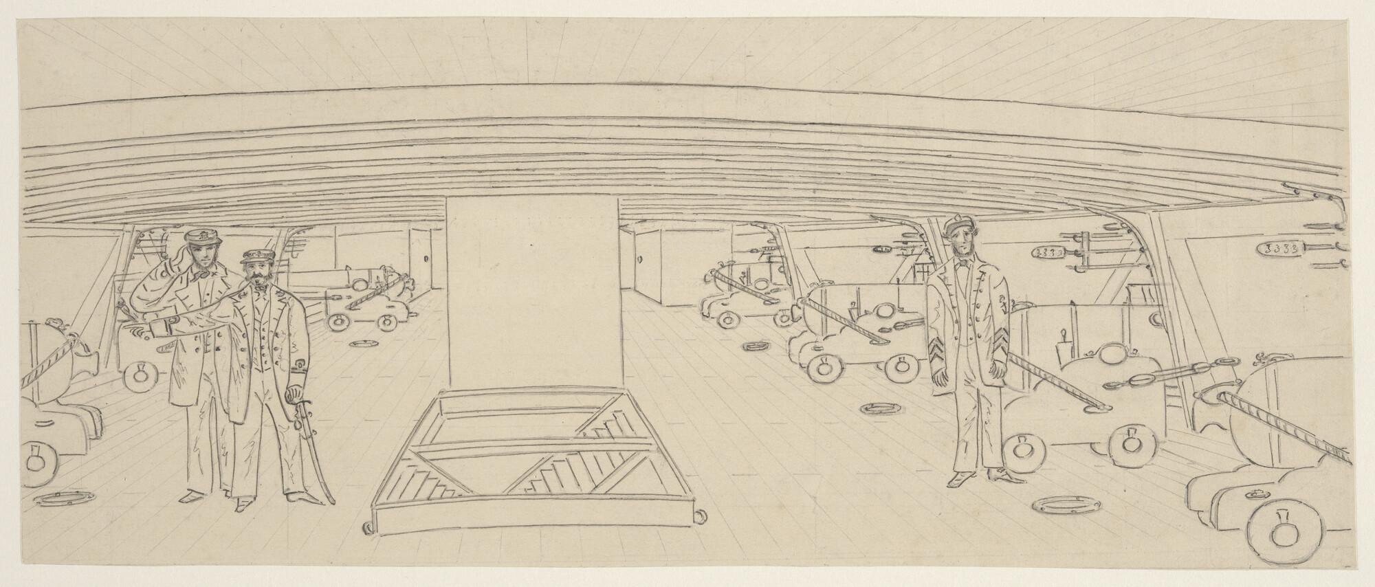 Inspectie van de kuilbatterij van het korvet Zr.Ms. "Medusa".