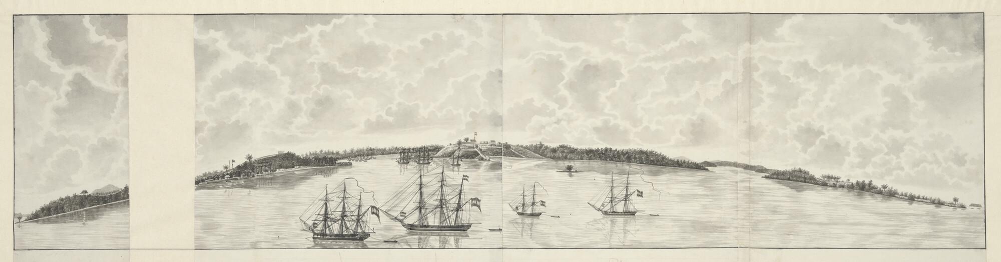 Het eskader onder bevel van Schout-bij-Nacht C.J. Wolterbeek op de rede van het eiland Mars bij Riouw.