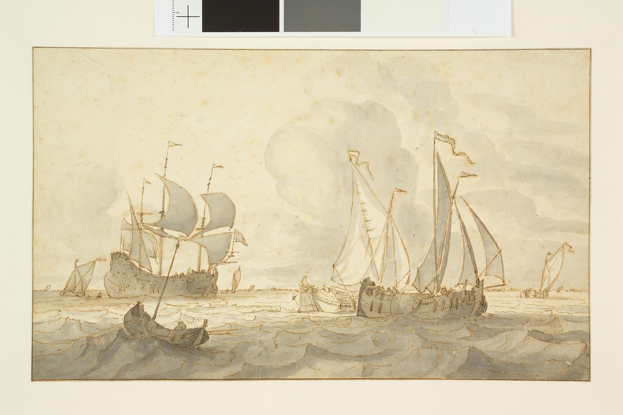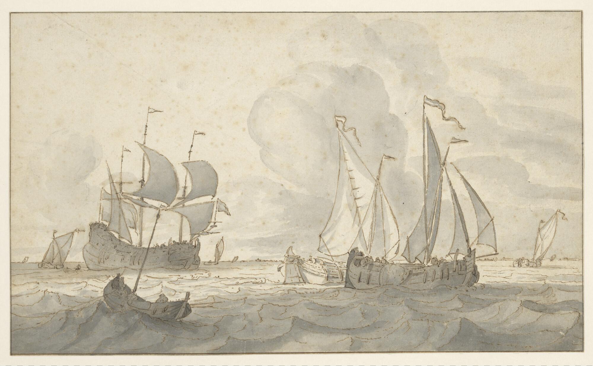 Een wijdschip en een fluitschip op een rede