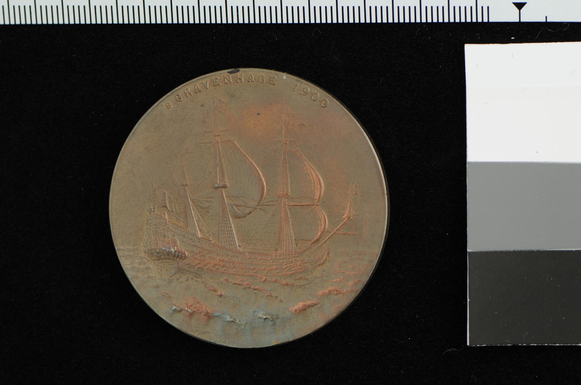 Penning geslagen ter gelegenheid van de Historische Tentoonstelling van het Nederlandsche Zeewezen gehouden te 's-Gravenhage, 1900.