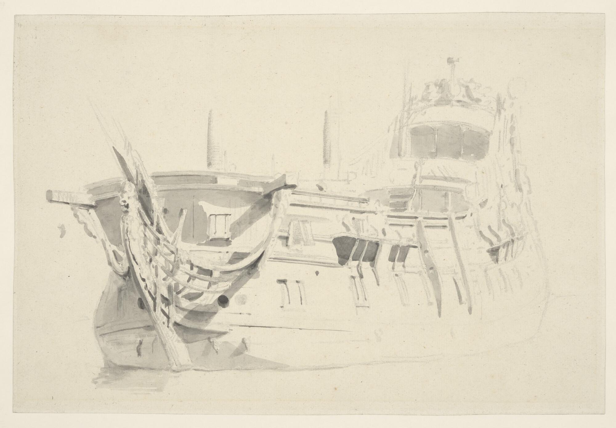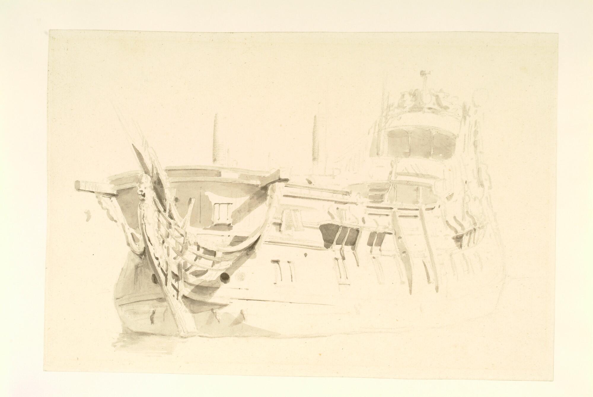 Klein oorlogsschip, gezien van bakboord voor.