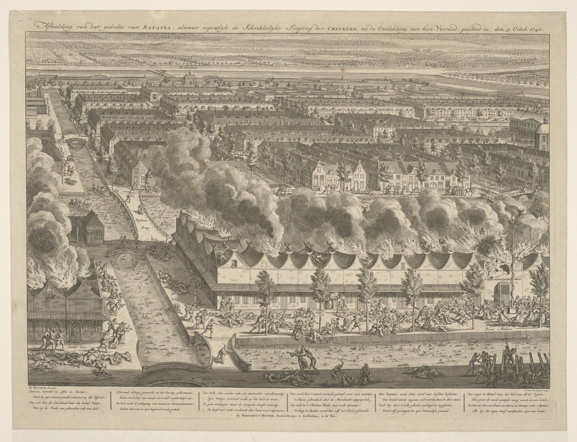 Afbeelding van dat gedeelte van Batavia, alwaar eigentlyk de schrikkelyke slagting der Chinezen, na de ontdekking van hun verraad, geschied is, den 9. octob: 1740.