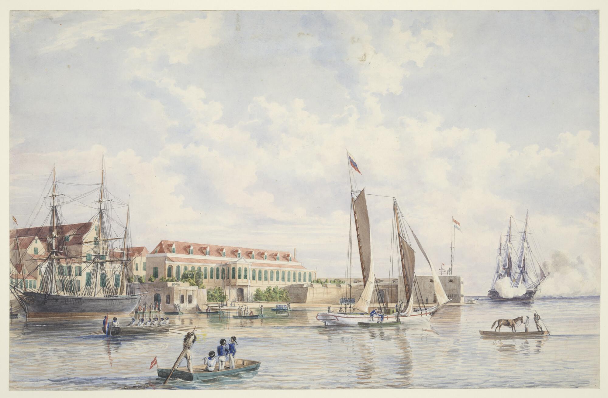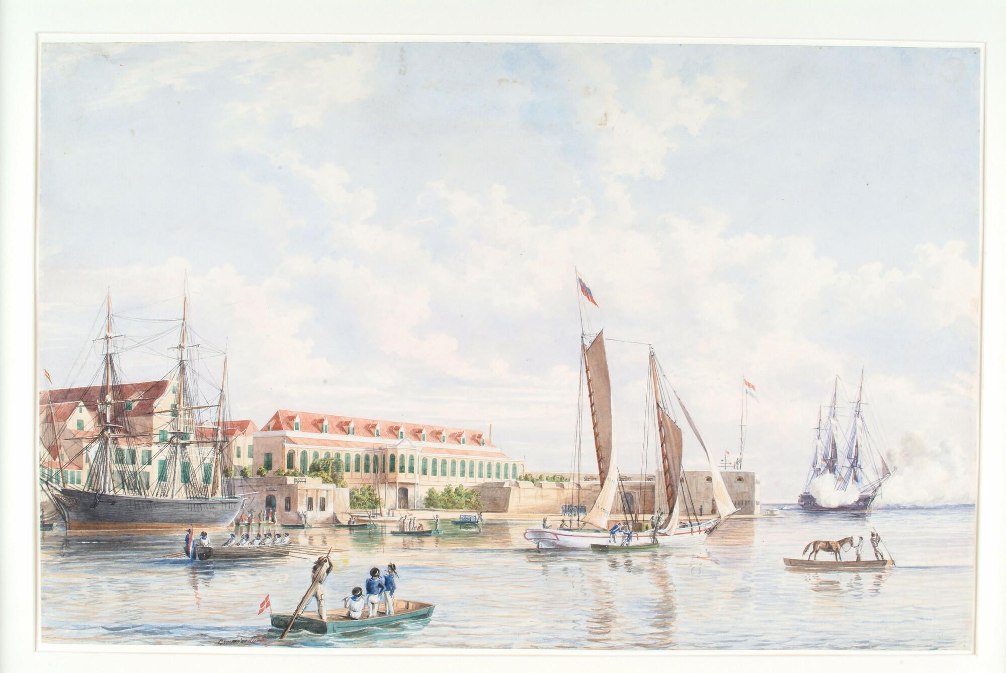 De haven van Curaçao met het Gouvernementshuis en het waterfort