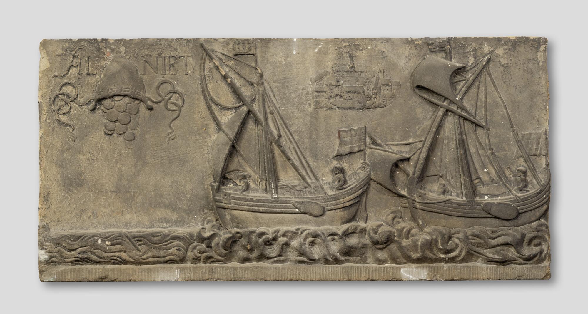Gevelsteen met voorstelling van een twee binnenvaartschepen
