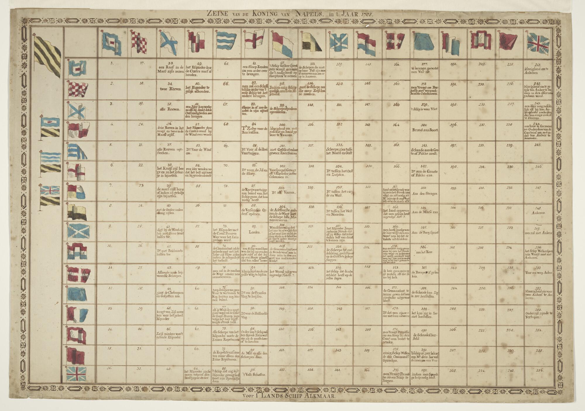 Seinen vastgesteld door de Koning van Napels in het Jaar 1785 voor de Convoyeerende schepen (voor 's Lands schip "Alkmaar") bij de overtocht van Livorno naar Napels, augustus 1785.