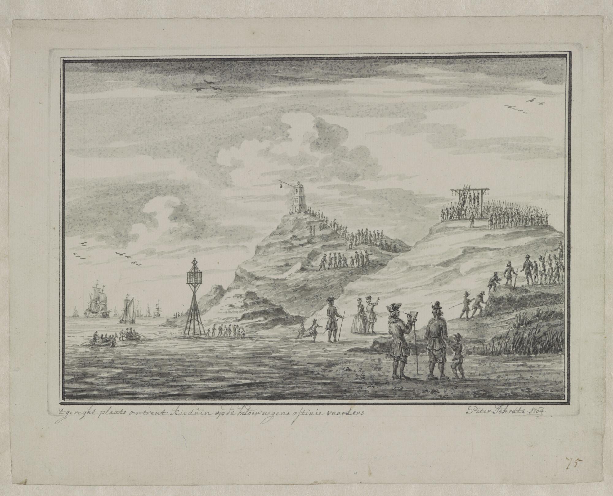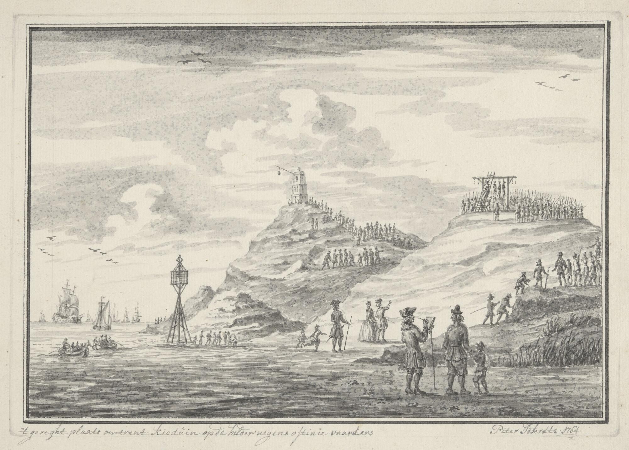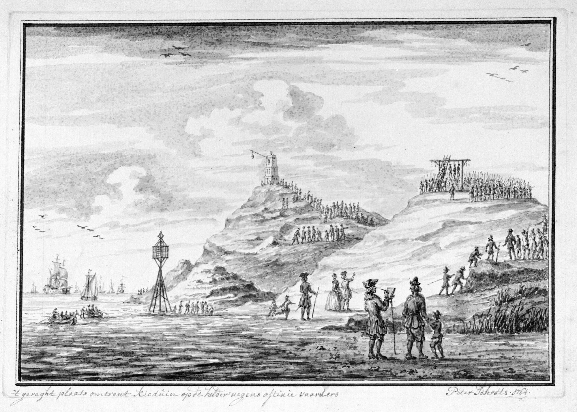 De gerechtsplaats te Kijkduin bij Den Helder met de lichamen van de muiters