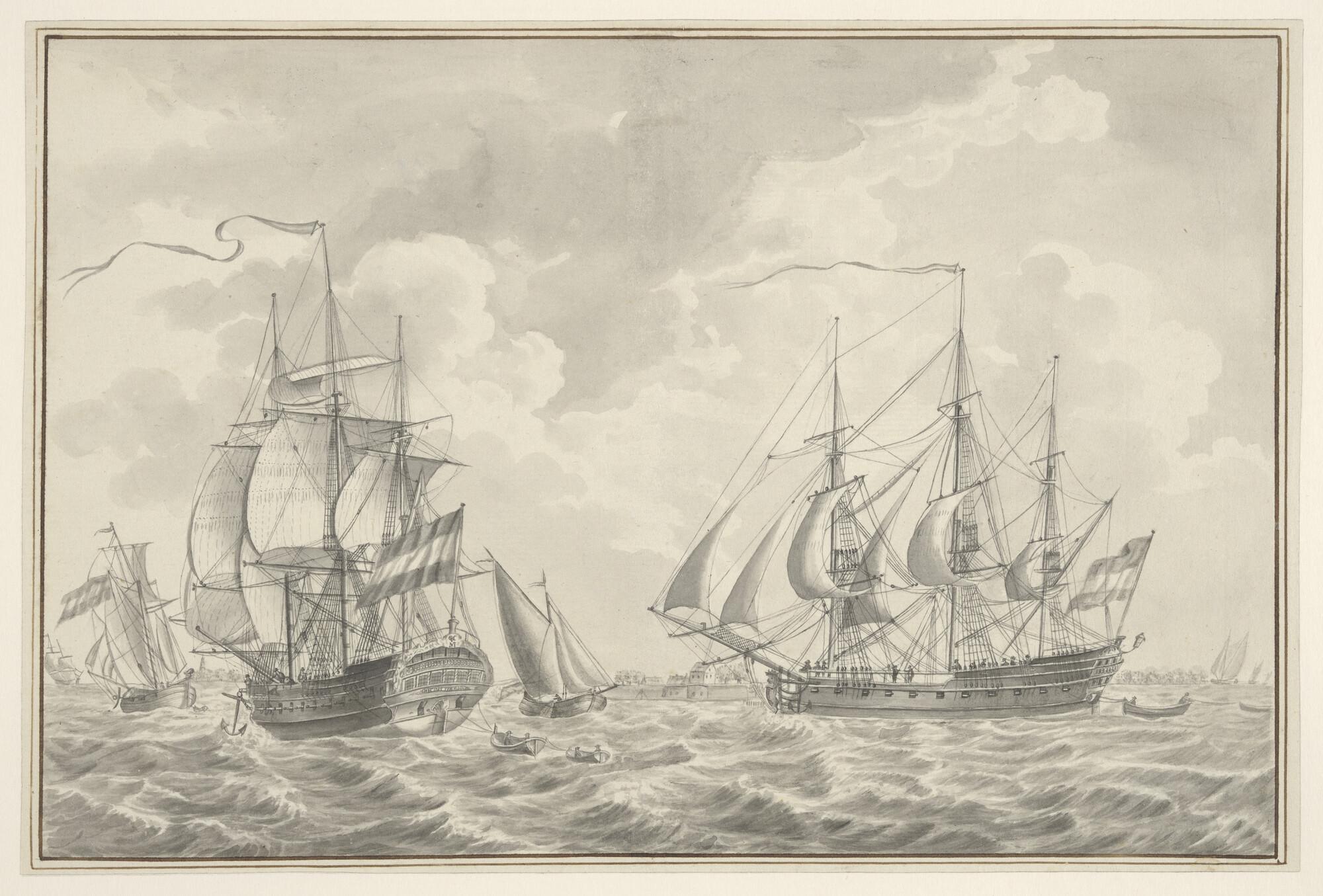 Het retourschip "Het Slot Ter Hooge" en andere schepen op een rede.