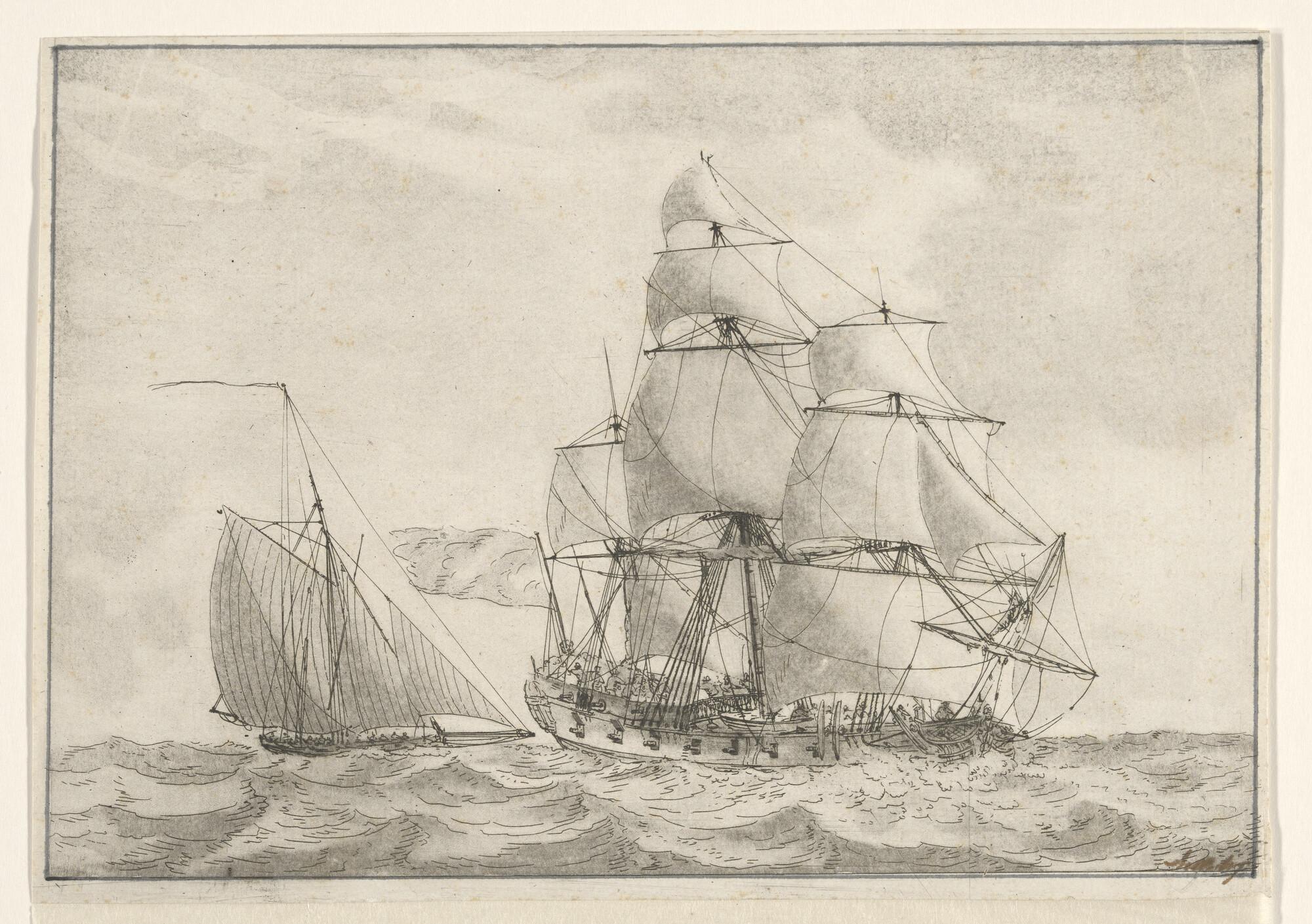 Een oorlogsfregat en een oorlogskotter