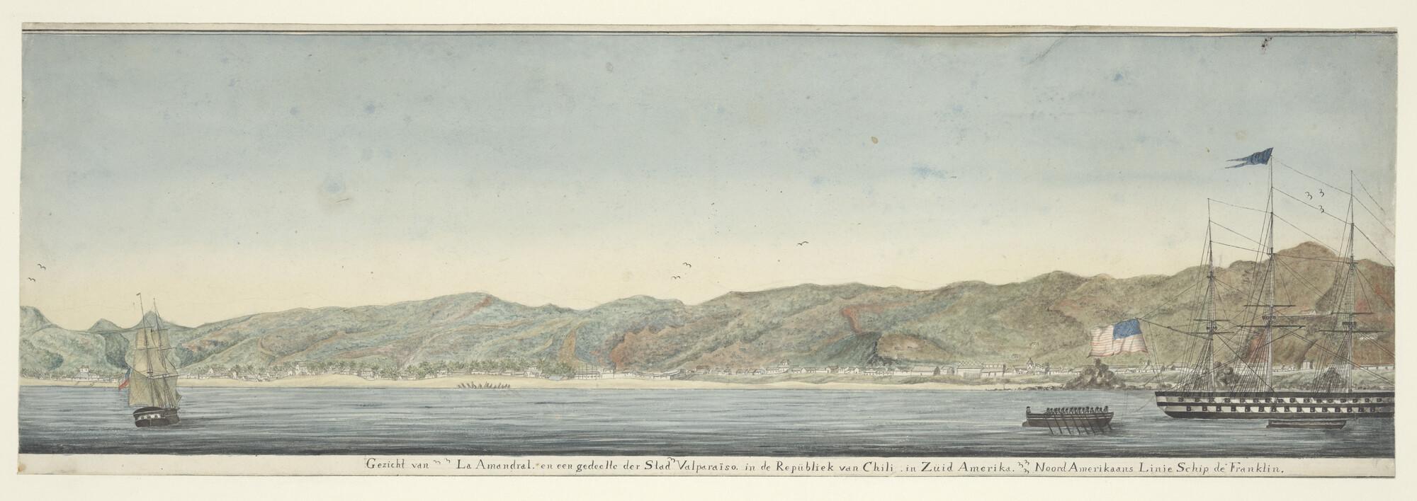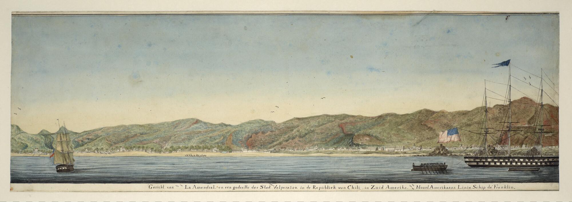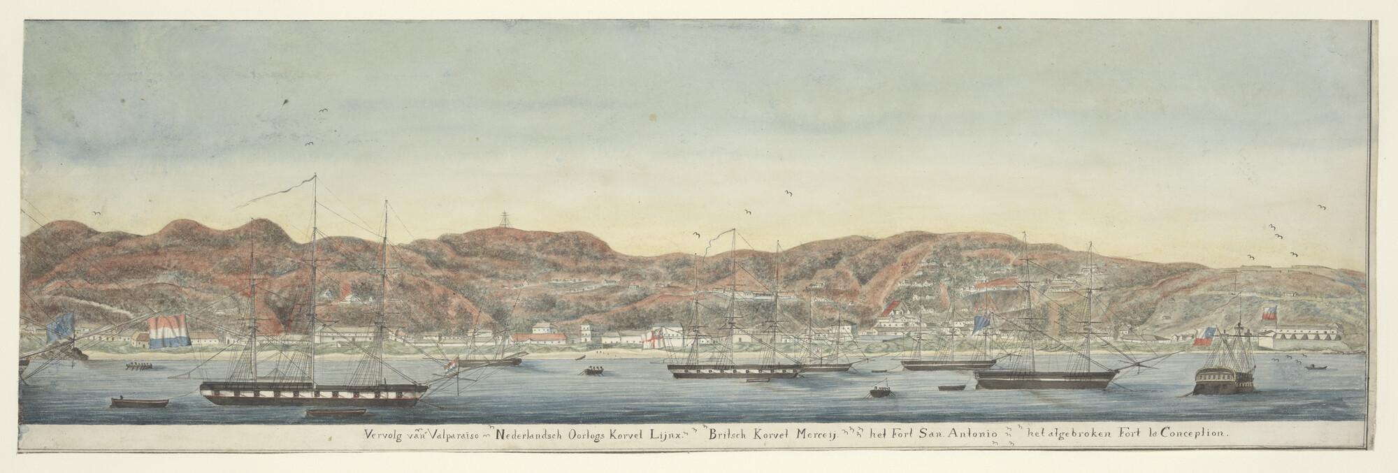 Het korvet Zr.Ms. 'Lynx' op de rede van Valparaiso