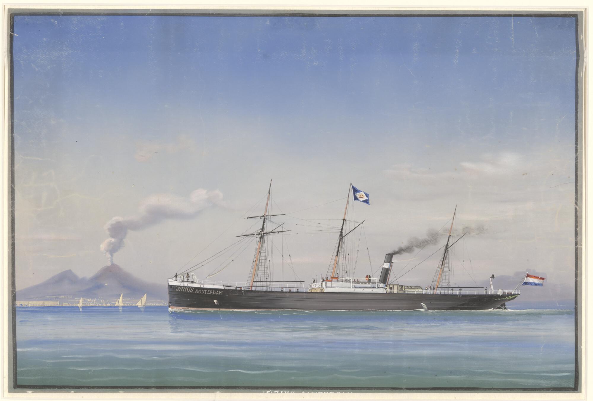 Het schroefstoomschip "Sirius" van de Koninklijke Nederlandsche Stoomboot Maatschappij varende ter hoogte van Napels.