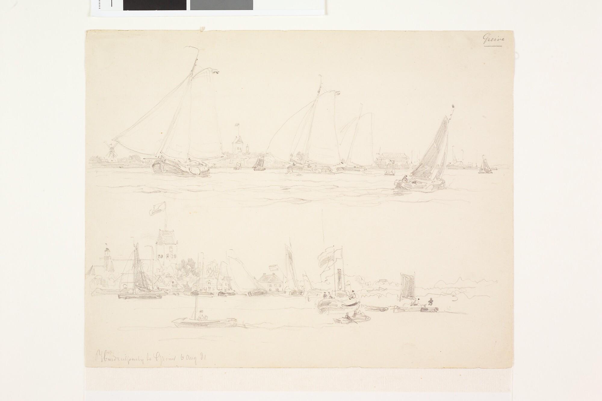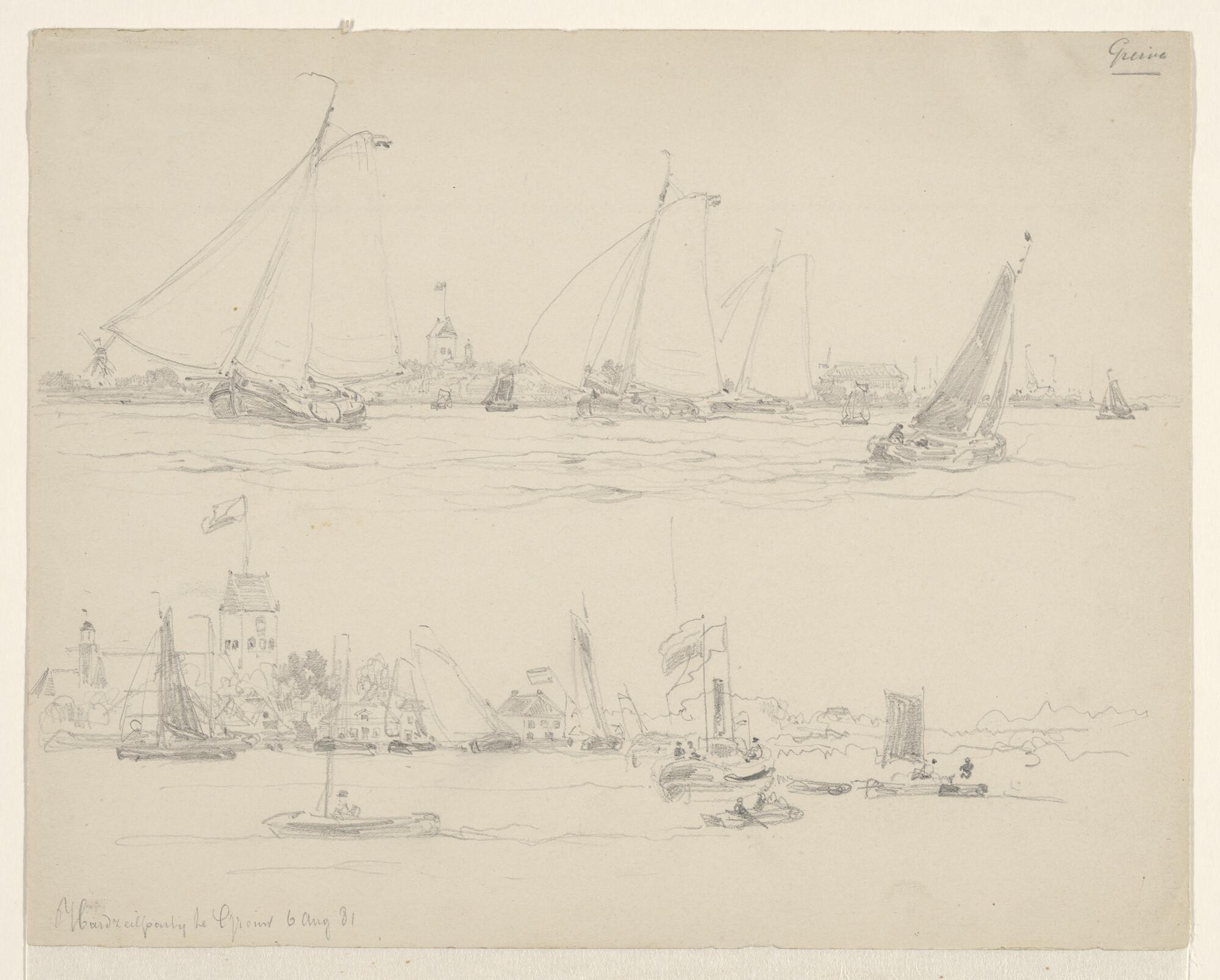 Zeilwedstrijden te Grouw, 1881: twee tekeningen op één blad.