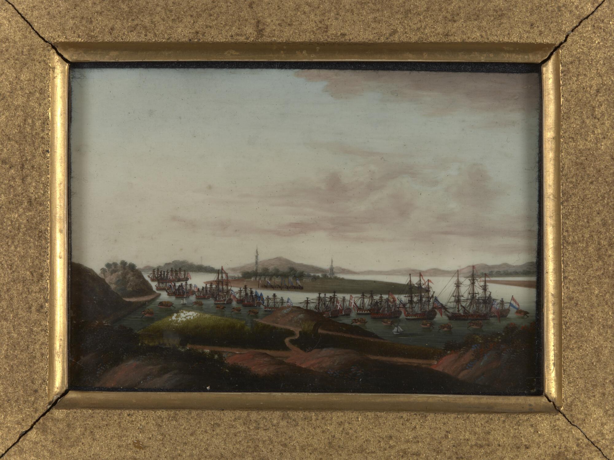 De rede van Whampoa met een grote internationale vloot, waarvan de schepen merendeels onttakeld.